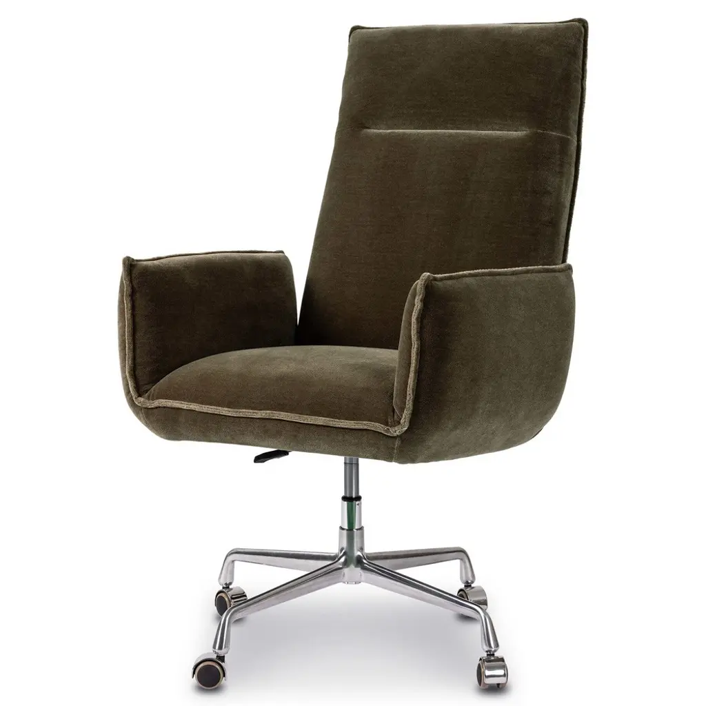 Leon Modern Classic Olive Green Velvet Stainless Steel Executive Office Chair