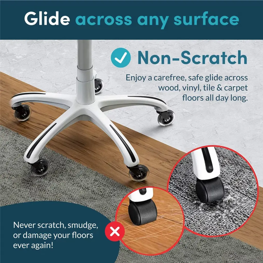 Lifelong Office Chair Caster Wheels For Hardwood Floors And Carpet, Heavy Duty, Universal Fit - Black And Clear