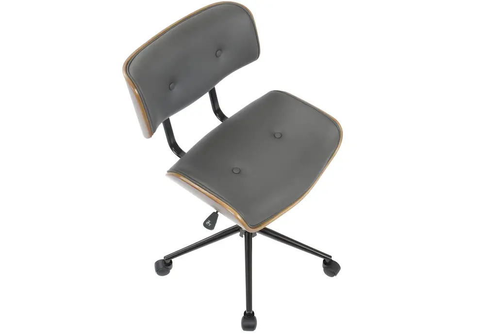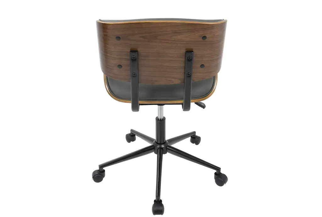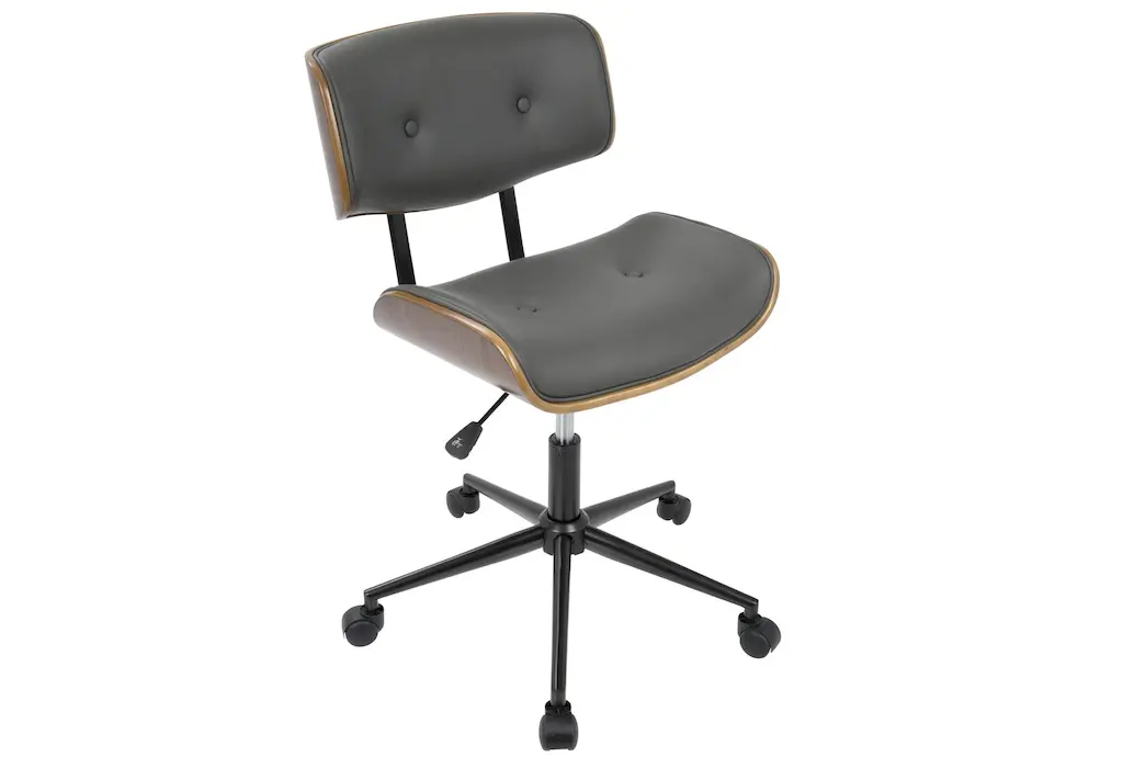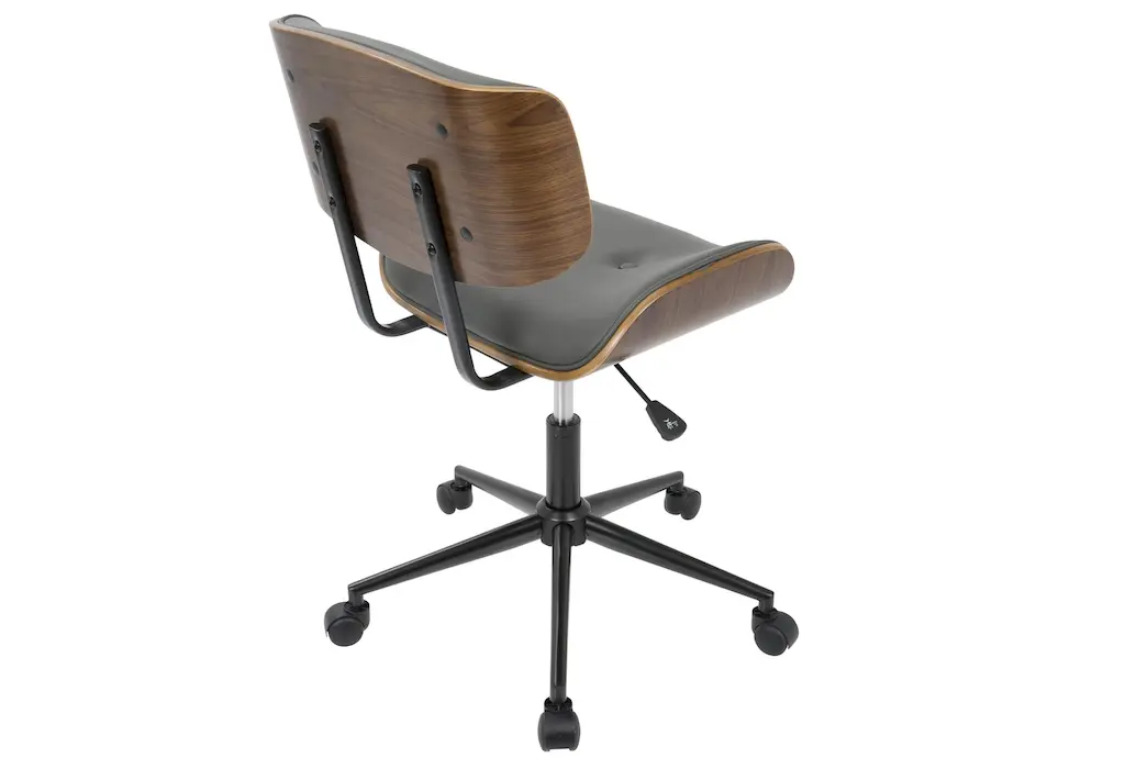 Linnea Walnut Brown Grey Faux Leather Swivel Adjustable Rolling Wood Office Desk Chair | Ergonomic | Armless