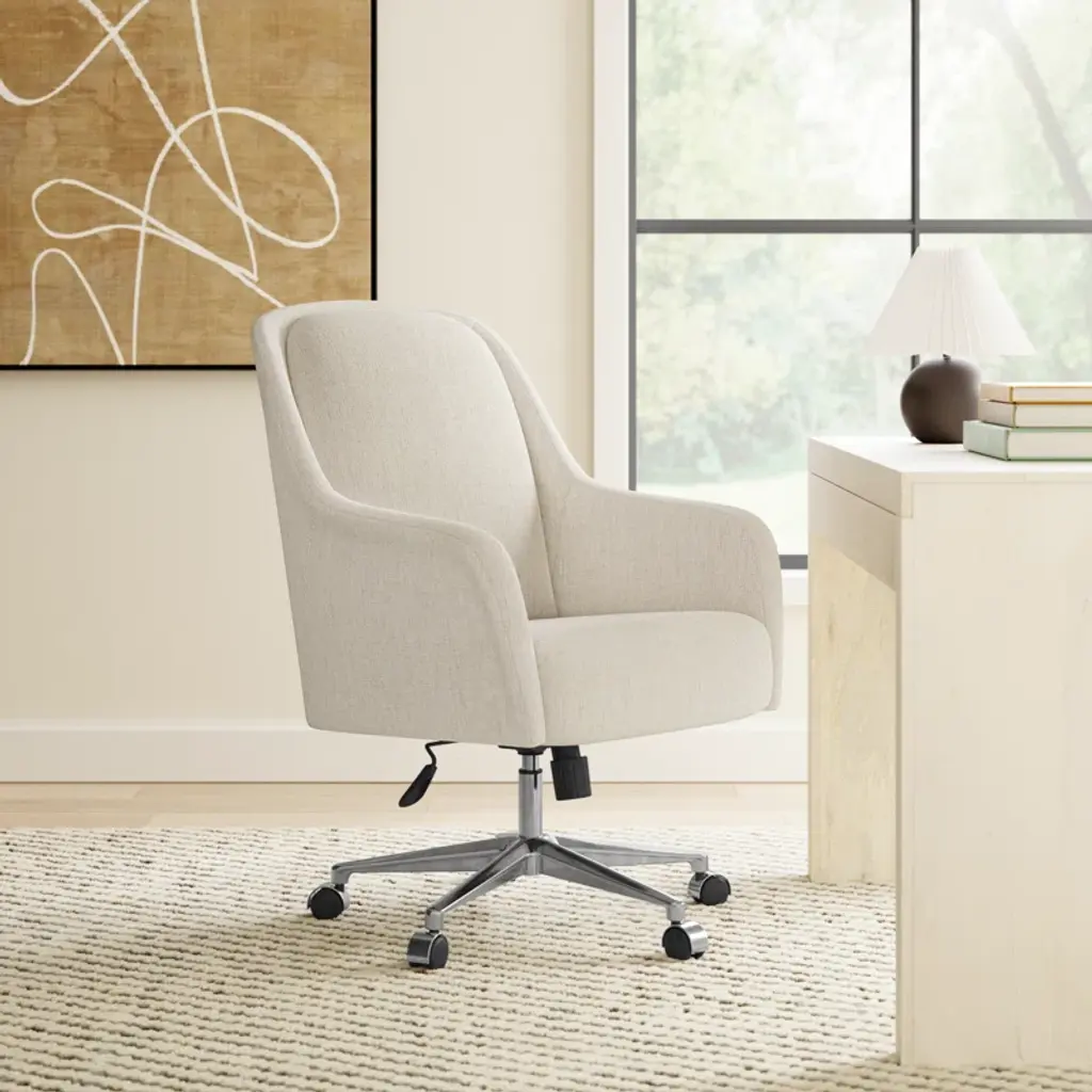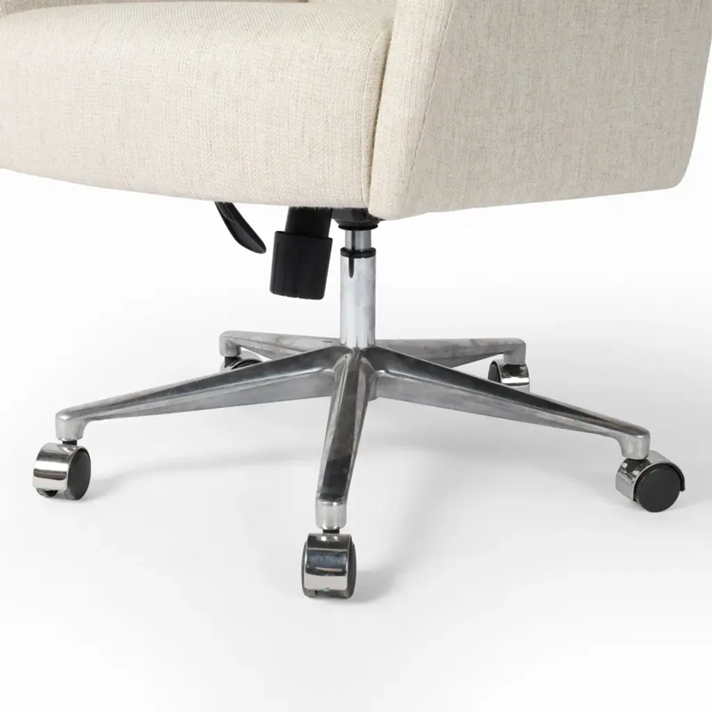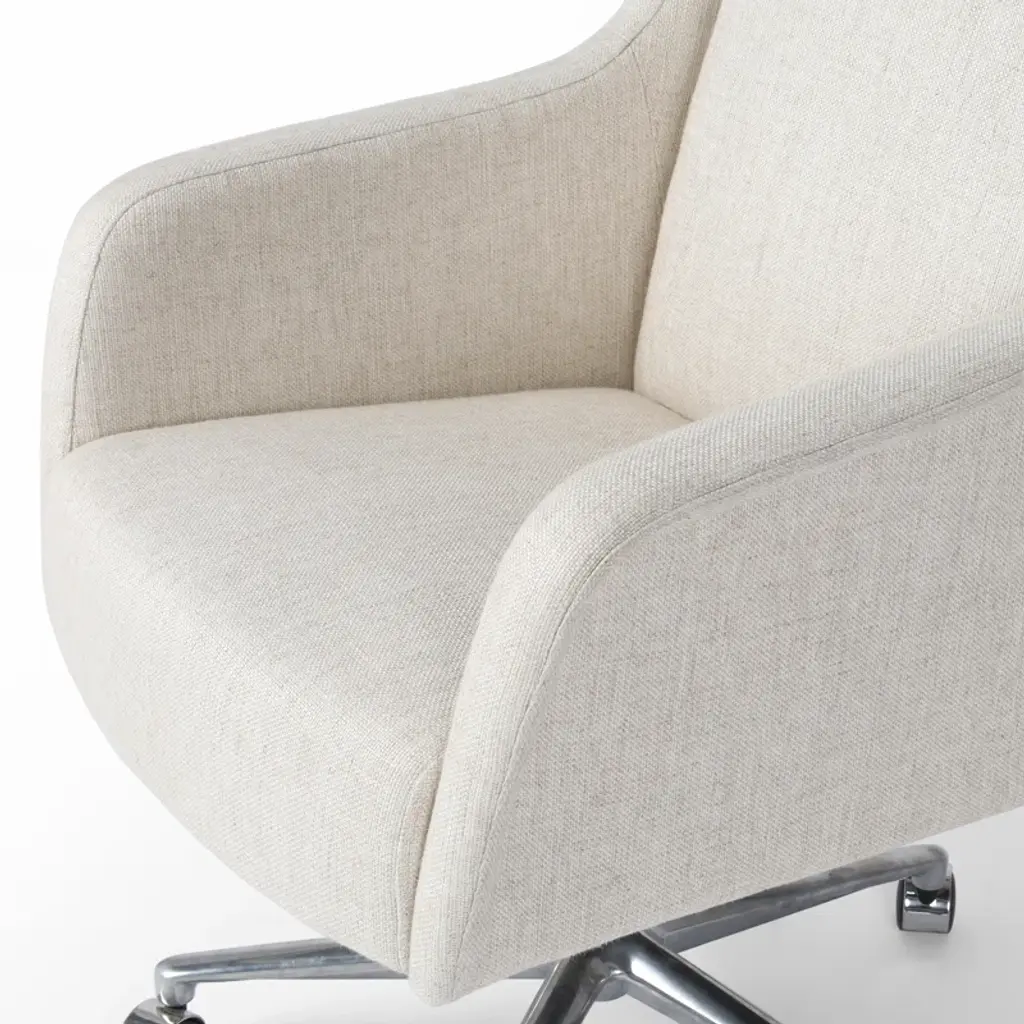 Fully upholstered in a linen-like fabric, this desk chair brings an executive look to the office, finished with a 360 swivel atop casters.