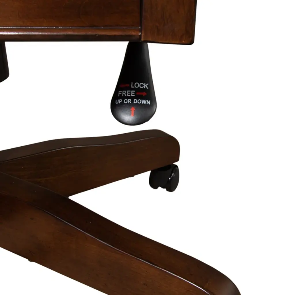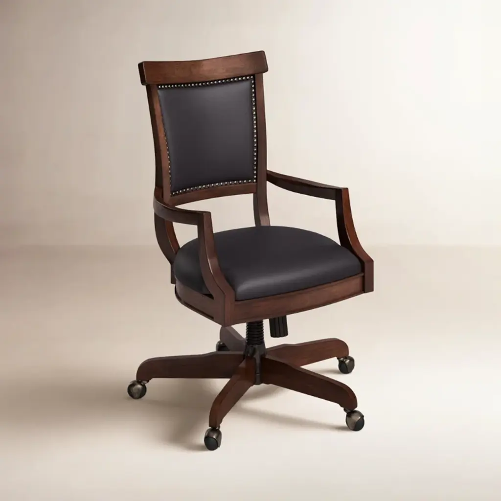 Comfort and productivity come together the Mattern home office chair. Designed for brainstorming sessions and checking off to-do lists, it features a solid wood frame and upholstered seat and backrest. With a swivel function and adjustable height, you can easily find your ideal position for tackling your daily tasks. We love how the double-wheel casters glide smoothly on various floor types, from hardwood to carpet. Just spot clean with a dry cloth to keep it looking fresh.