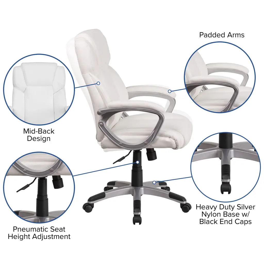 Mid-Back Leathersoftsoft Executive Swivel Office Chair With Padded Arms