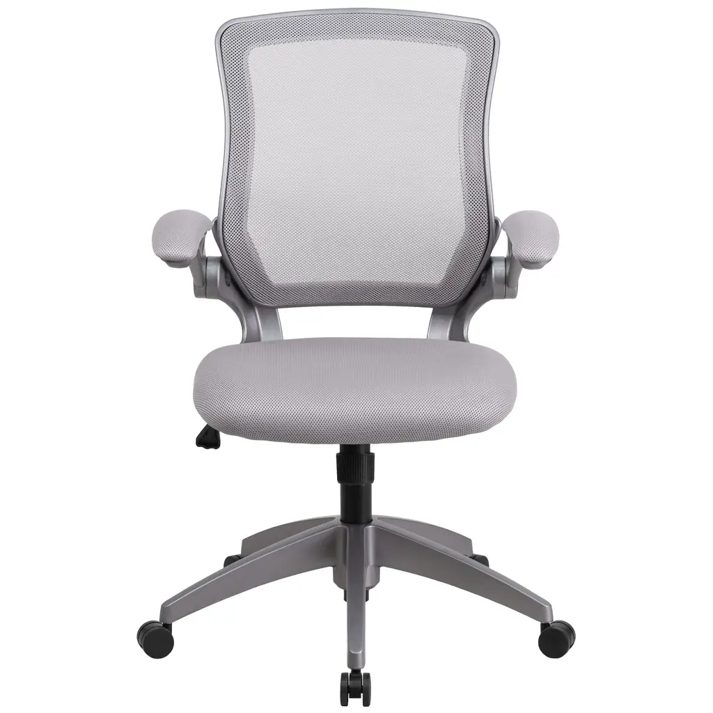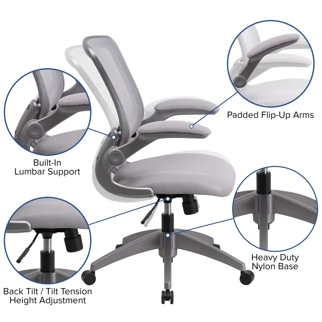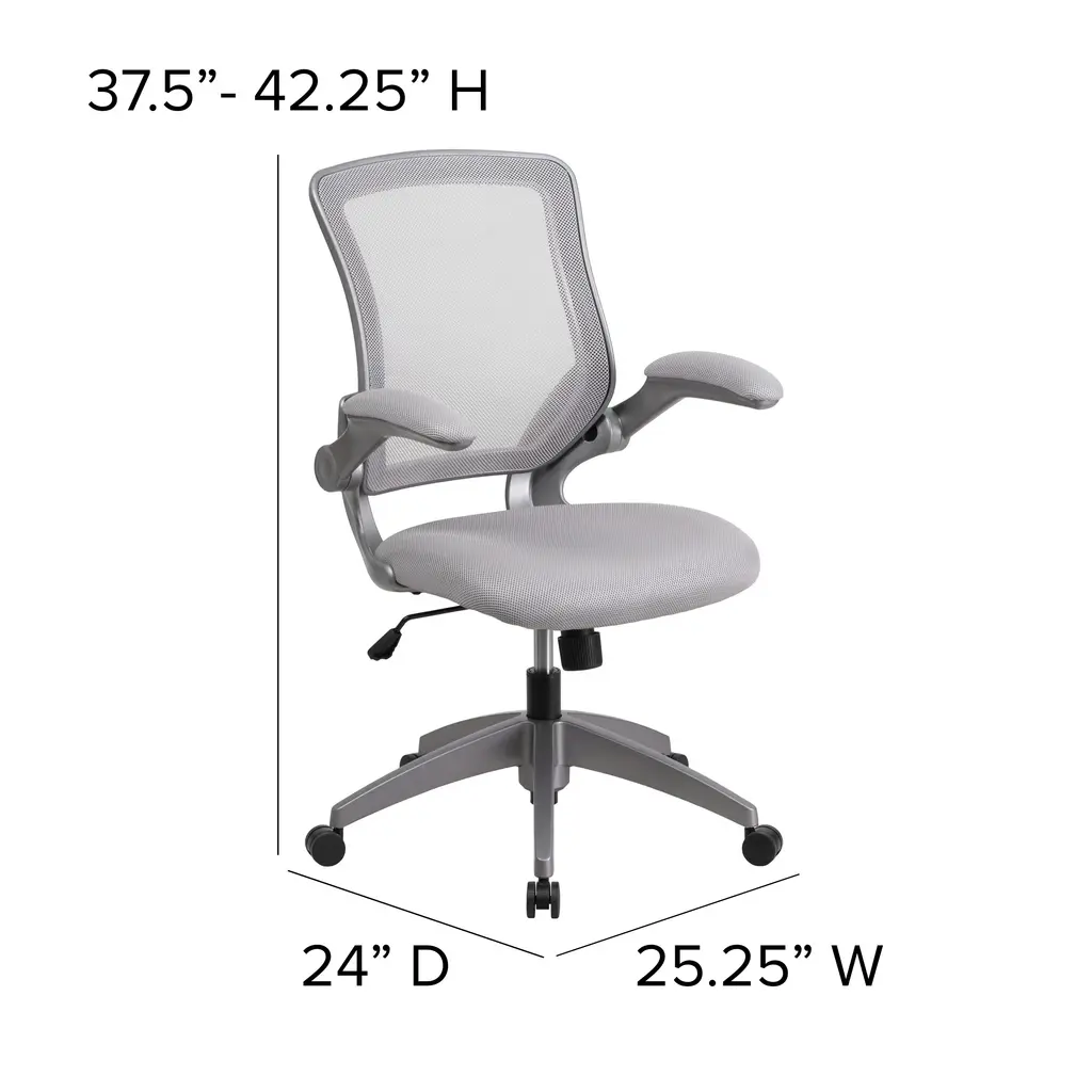 Mid-Back Mesh Swivel Ergonomic Task Office Chair With Gray Frame And Flip-Up Arms