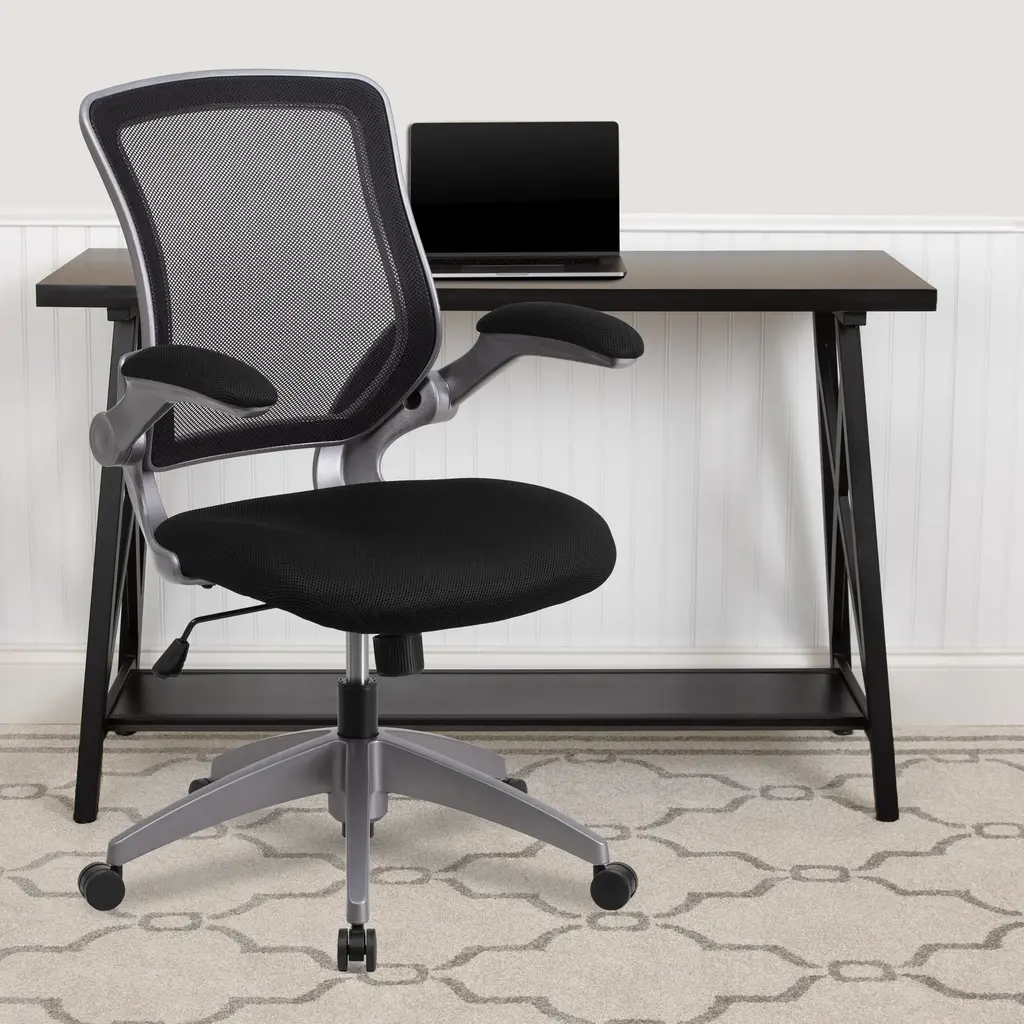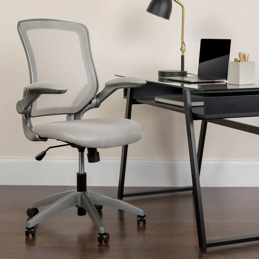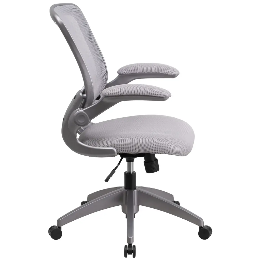 Mid-Back Mesh Swivel Ergonomic Task Office Chair With Gray Frame And Flip-Up Arms