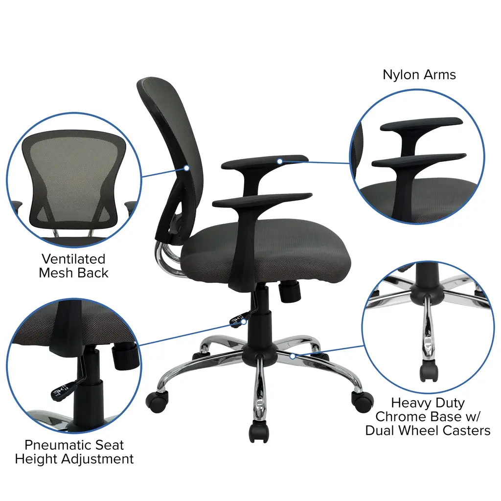 Mid-Back Mesh Swivel Task Office Chair With Chrome Base And Arms