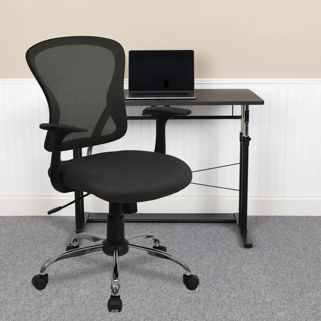 Mid-Back Mesh Swivel Task Office Chair With Chrome Base And Arms