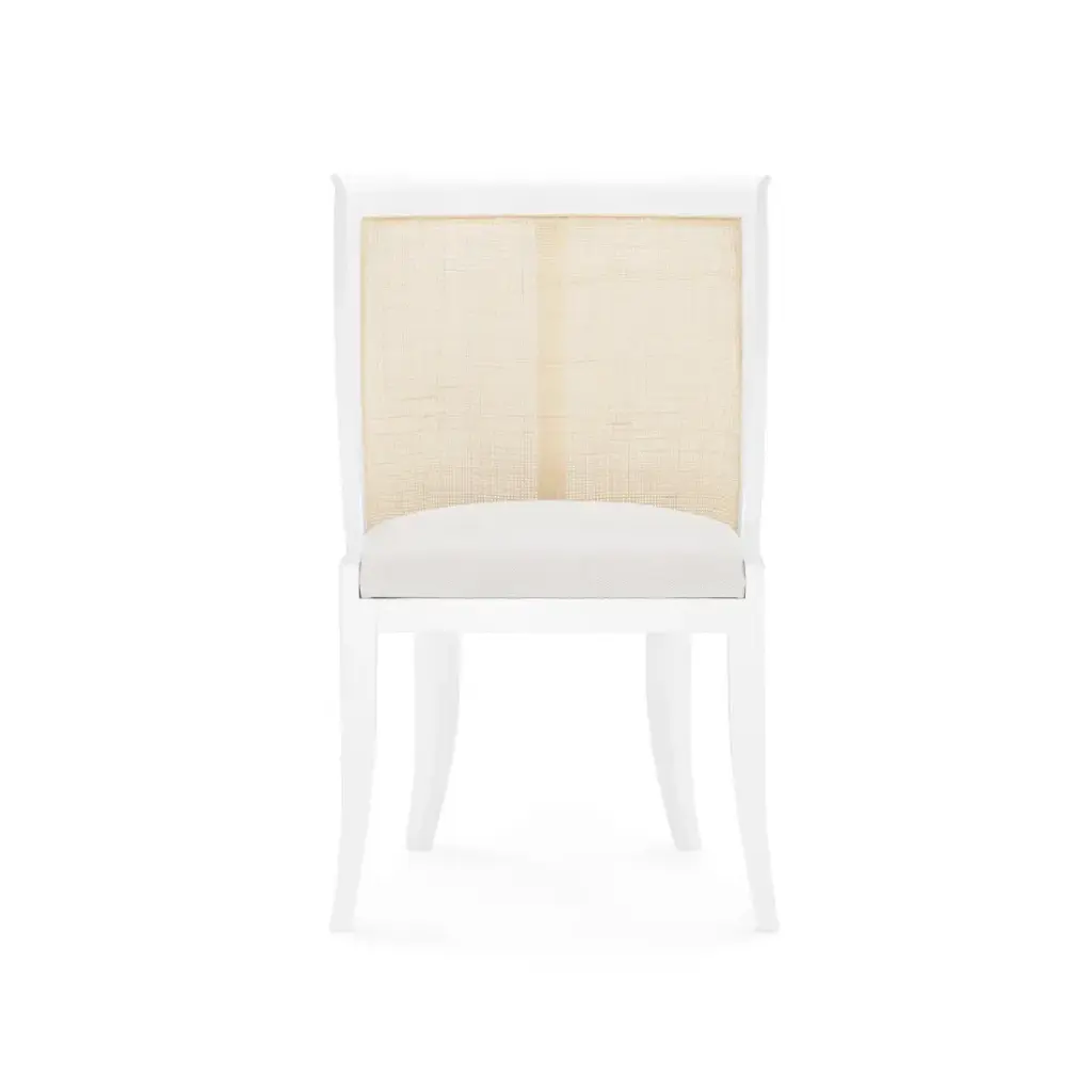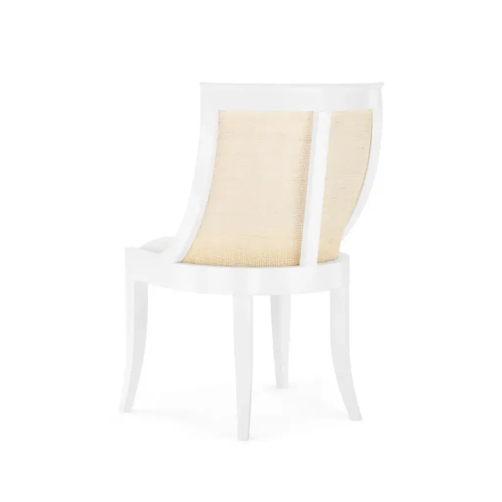 A distant cousin to the Alexa Chair, the Monaco’s shape is derived from ancient Klismos chairs of Greece but also has notes of Art Deco influence. The slightly flared, hand-carved legs add a touch of elegance and refinement. The curved back is striking from all angles—and allows the seat to be nestled nicely under a dining table or desk. Each detail of the Monaco is carefully considered. The back is carved by hand for subtle shaping while the basket weave-patterned caning is hand woven in our factories, strand by strand. The linen drop-in seat is easily reupholstered. The result, finished in layers of white lacquer, is comfortable without being overly large and perfectly suitable as a desk chair to work from home or dotted around a curved dining table (as it has no trouble with the apron of a desk or table). What We Love About The Monaco: The striking curves of the Monaco and its total versatility continually make it one of our bestselling items.