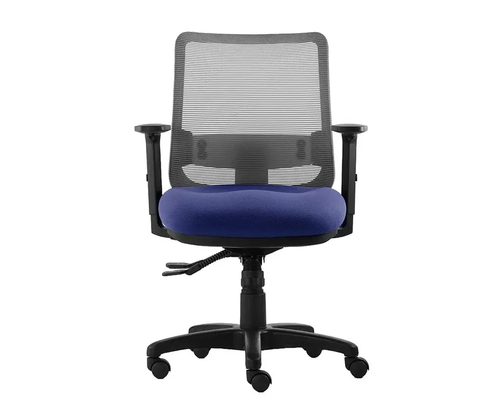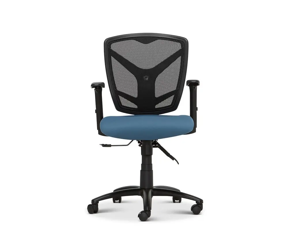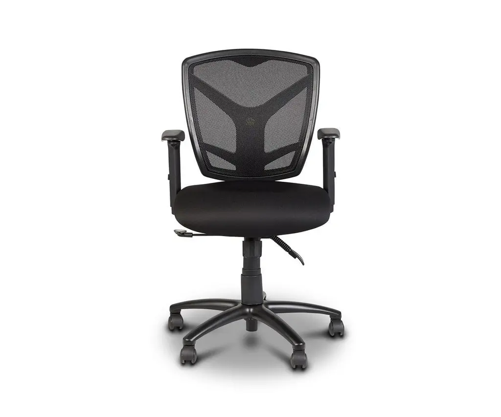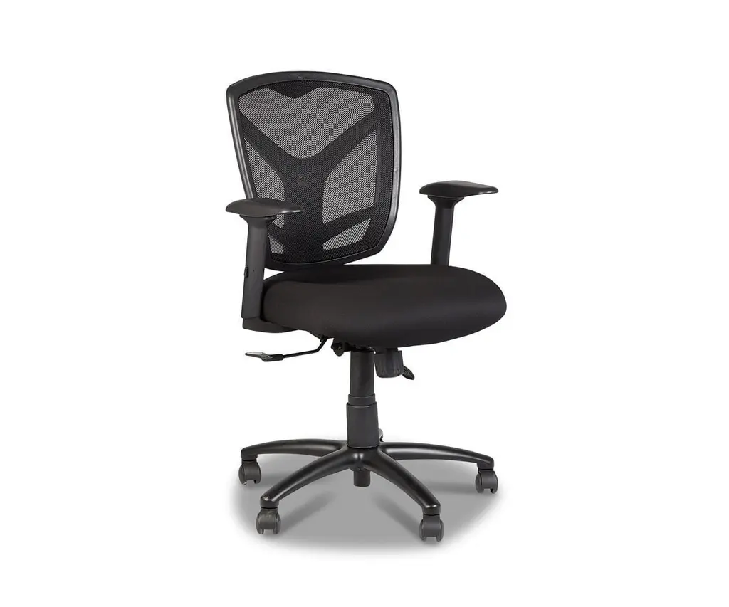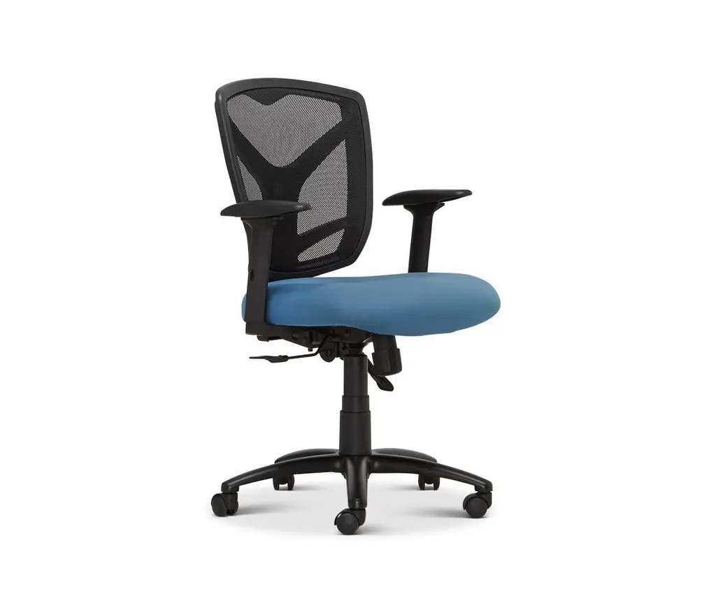 Update your office seating with the Monti desk chair, featuring breathable mesh backrest and plush-cushioned seat. Cantilever-style arms and adjustable height.