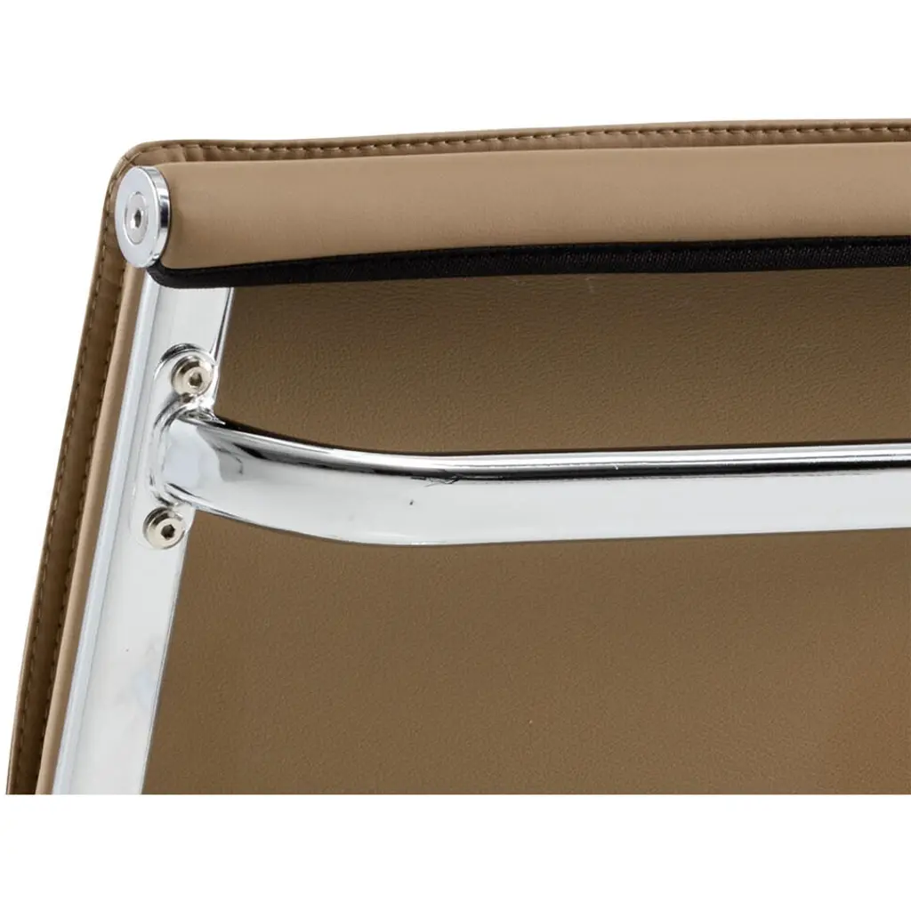 This office chair sits comfortably with a padded seat and back in tan faux leather. Finished with a stainless steel frame and castors for mobility. Handle With Care: This design has been crafted with faux leather. Faux leather is manufactured to reflect the natural characteristics of leather as such, colour variations, markings, wrinkles, grooves, and light scratches are appreciated characteristics. No two pieces will be alike. Visit our Product Care page for more information on how to ensure the lasting beauty of this piece.