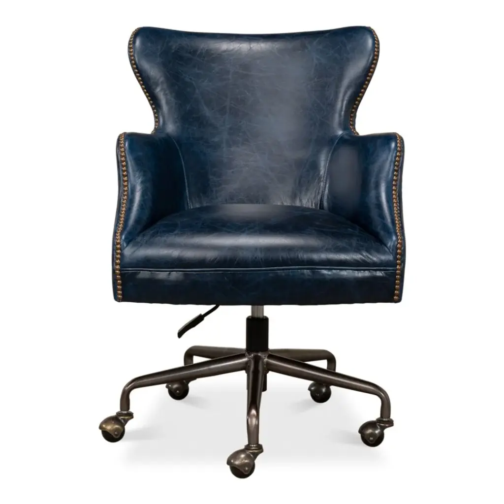 Nevill Blue Leather Swivel Desk Chair