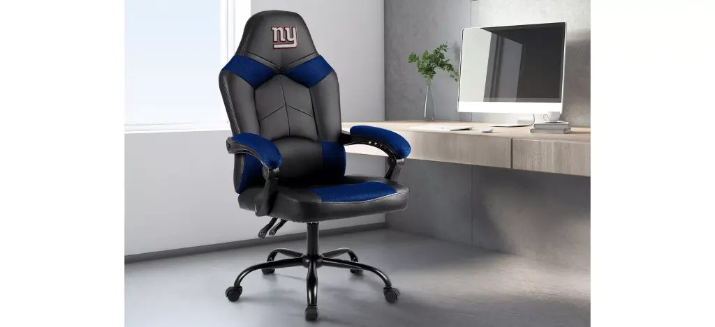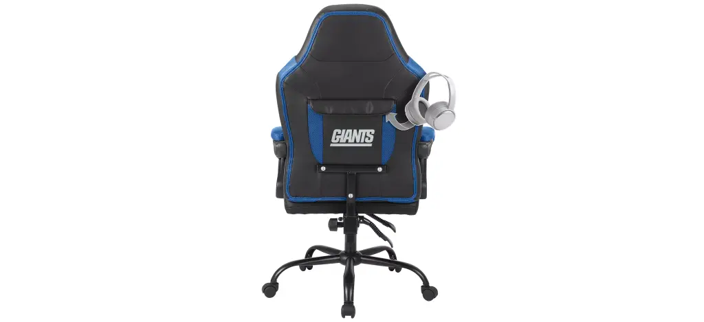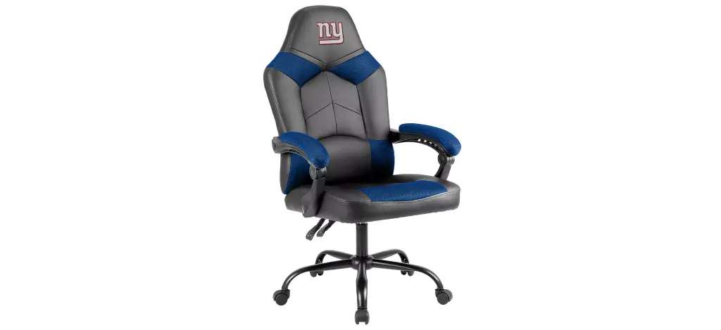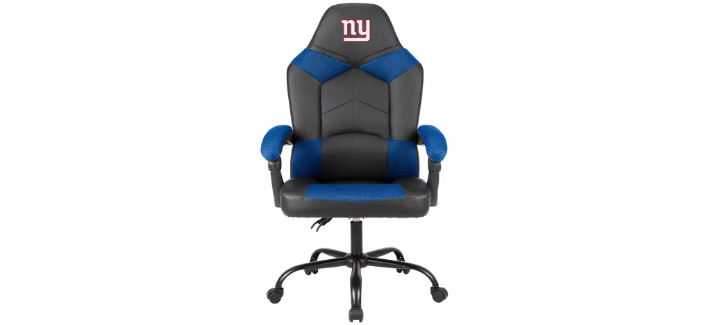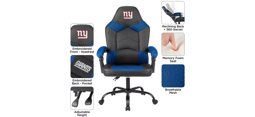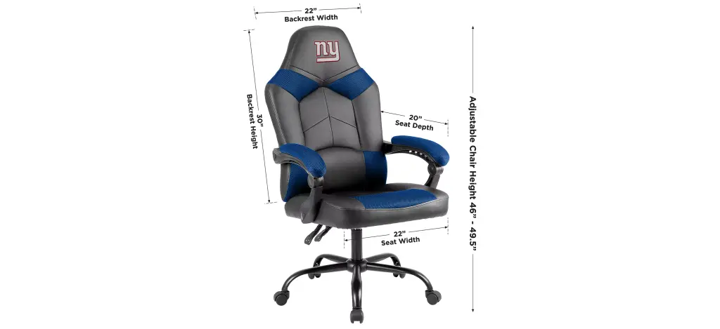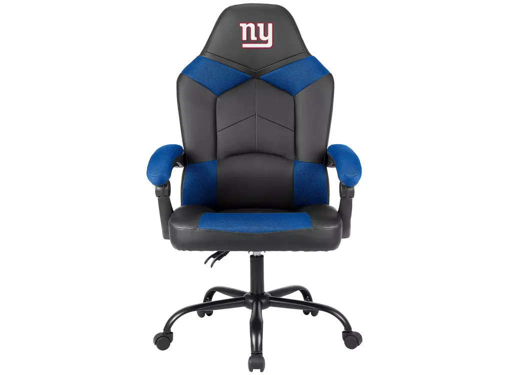NFL Oversized Office Chairs New York Giants logo is perfect whether working or gaming, enjoy hours of comfort. The steel frame ensures a sturdy base while the foam cushion and breathable mesh provide a comfortable seat. The gas lift system allows you to easily adjust the seat height. On the back of the chair is a convenient pouch, perfect for storing your game controller or headphones. Colorful team design with direct embroidered logos located on the front headrest and back pouch.