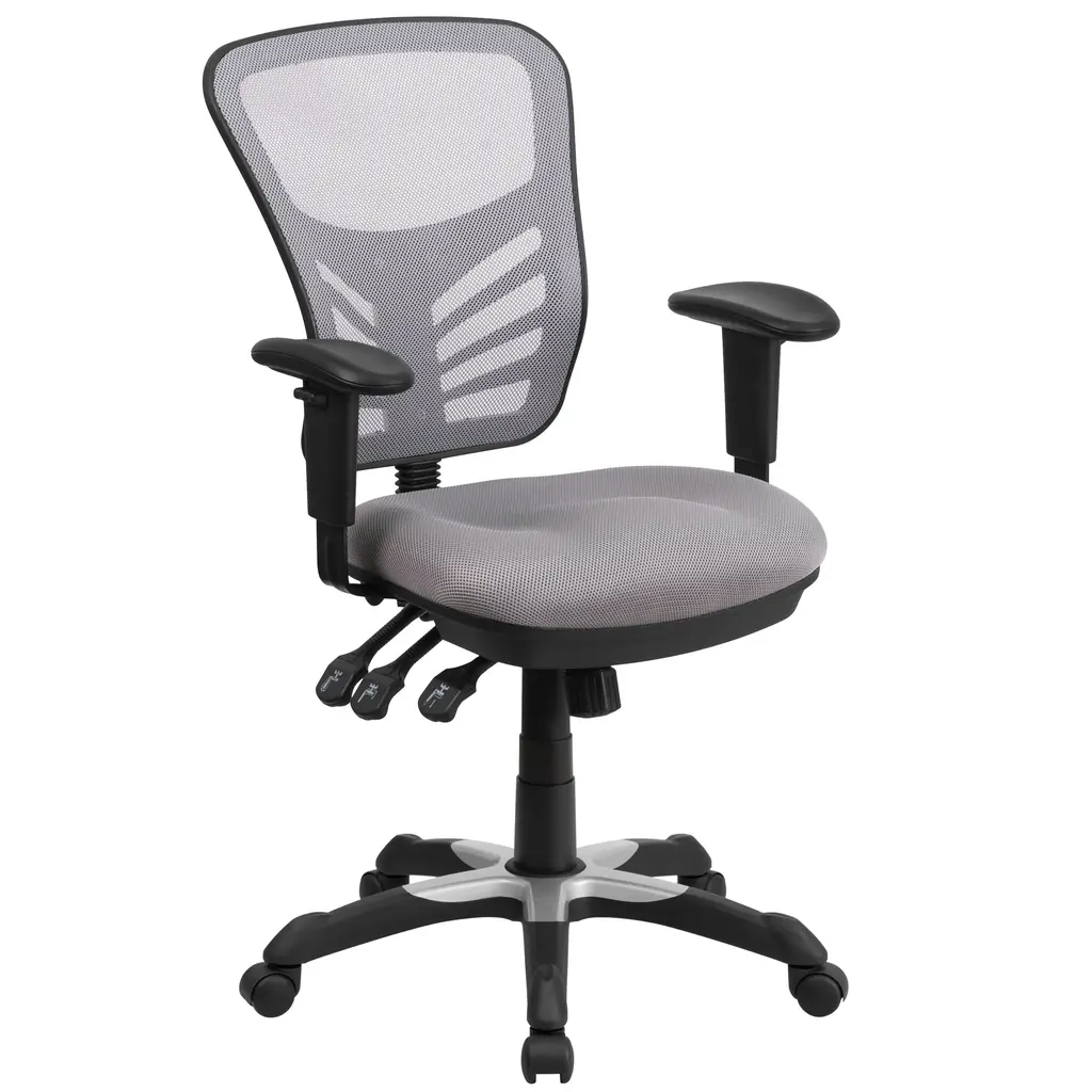 Add sleek mobility and modern style to any workspace with this updated task office chair. This chair comes fully loaded including updated polyurethane roller style wheels to help you take charge of your day. With a ventilated mesh back, you'll have air circulating to your back giving you sweet relief during warm summer days. Make room for this modern beauty, upgrade everyone's chair in the office, granting everyone the ability to have a customized seating experience. - Adjustable back height knob adjusts 2" up and down - - Back angle paddle locks in multiple positions - - Tilt control paddle locks in multiple positions - - Curved back with substantial lumbar support - - Contour padded swivel seat will keep you in comfort - - Adjustable height arms provide relief to your neck and shoulders - - Steel framed ball-bearing skate wheels - Get a supportive ergonomic chair that can keep up with long 8 to 10 hour shifts with ease. This chair is so comfortable it can also be used as a gaming chair while you revel in an intense game against online players.