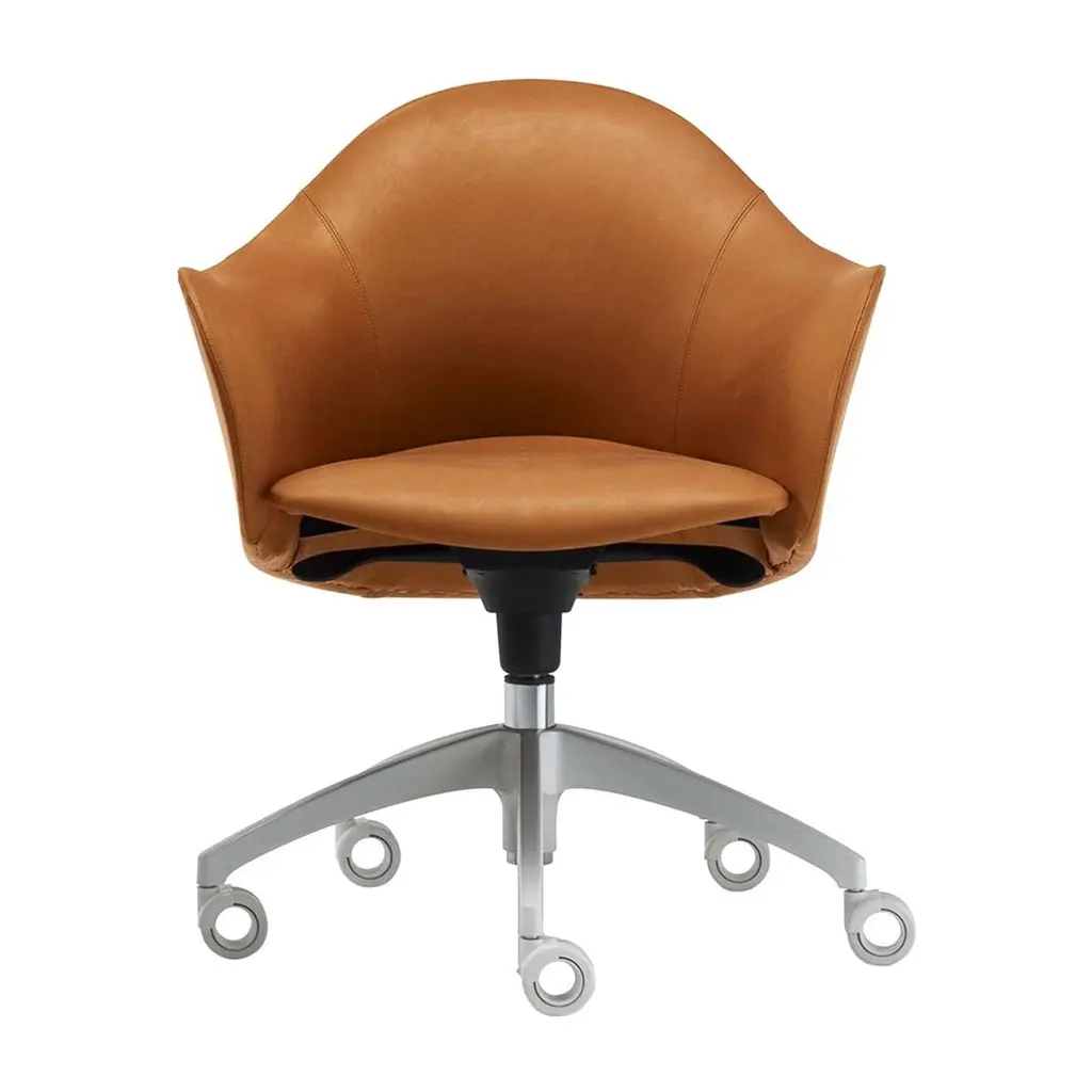 Nicos Zographos Alpha Bucket Desk Chairs W/ Bronze Base Cordovan Leather