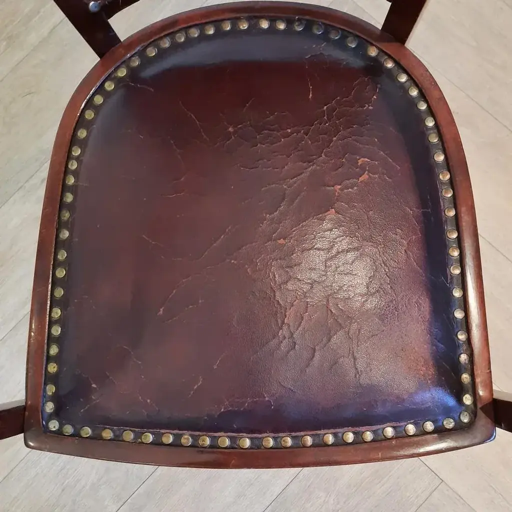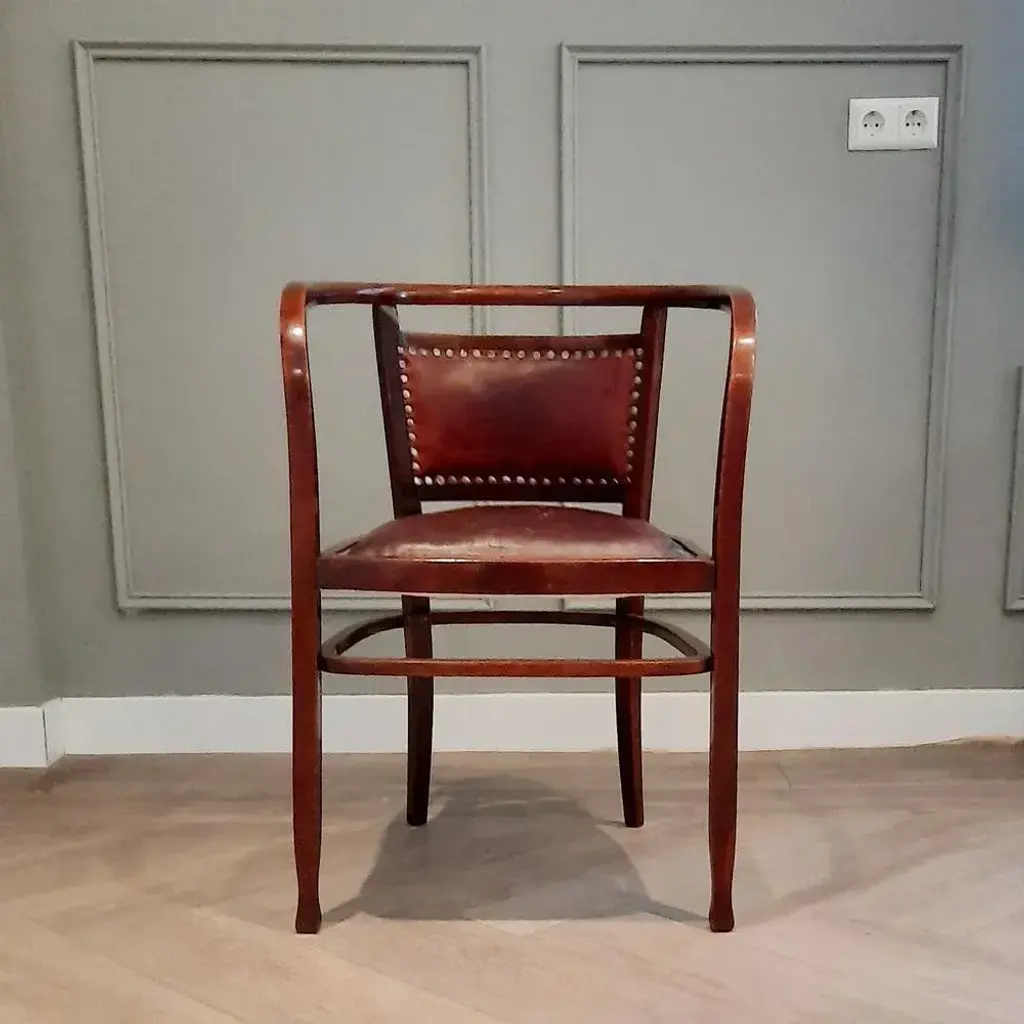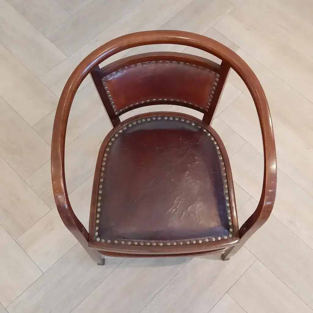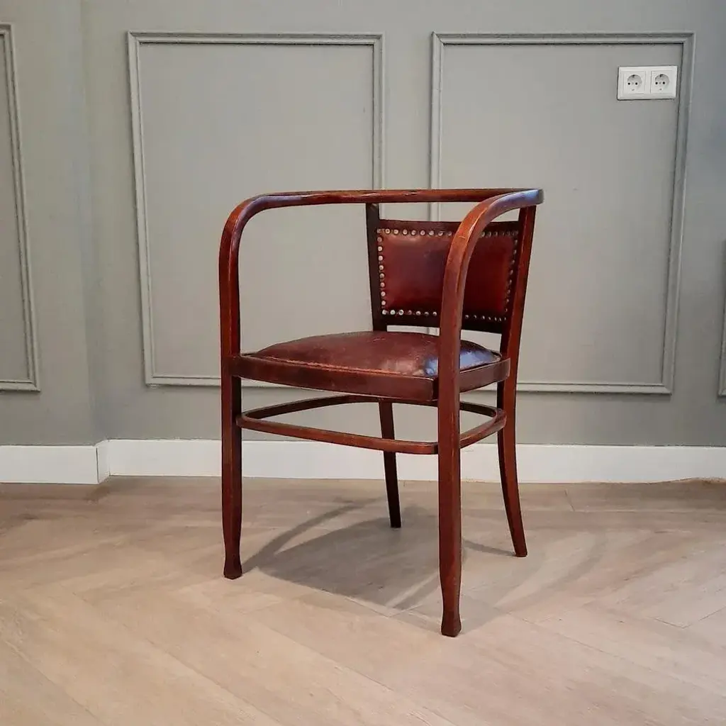 The austrian architect otto wagner (1841 -1918) designed desk chair no. 718 in 1902 for the building of "die zeit" in vienna. The chair was produced by j & j kohn. seat: spring bottom with brown leather upholstery. Both in good condition. As the springs are covered by fabric we do not know whether this chair is marked j & j kohn underneath the seat. i have official proof of authenticity such as vintage catalogs, designer records, or other literature sources and take full responsibility for any authenticity issues arising from misattribution