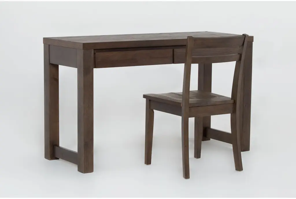 The Nora Brown Wood Desk with USB & Desk Chair is a versatile addition to any kids' room or office. This casual set features a sturdy wood construction with oak veneers and solid pine, ensuring durability and a timeless look. The desk includes convenient storage options and USB connectivity, making it perfect for computer work or writing tasks.