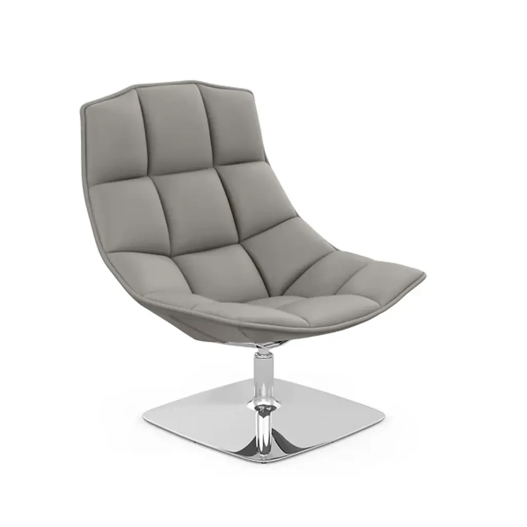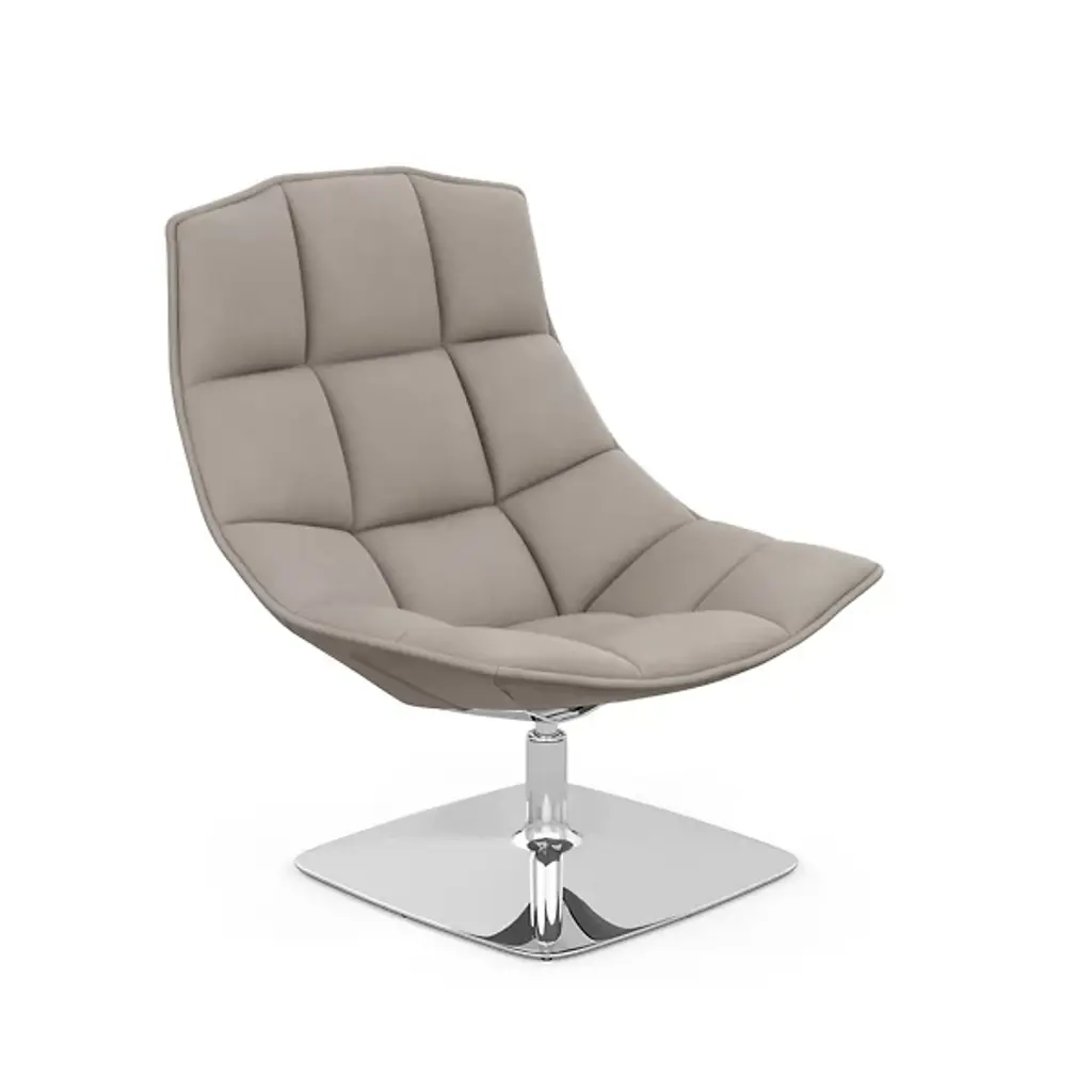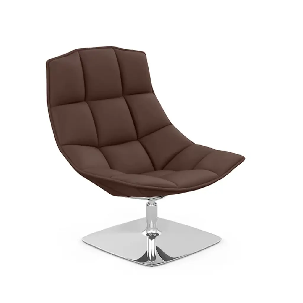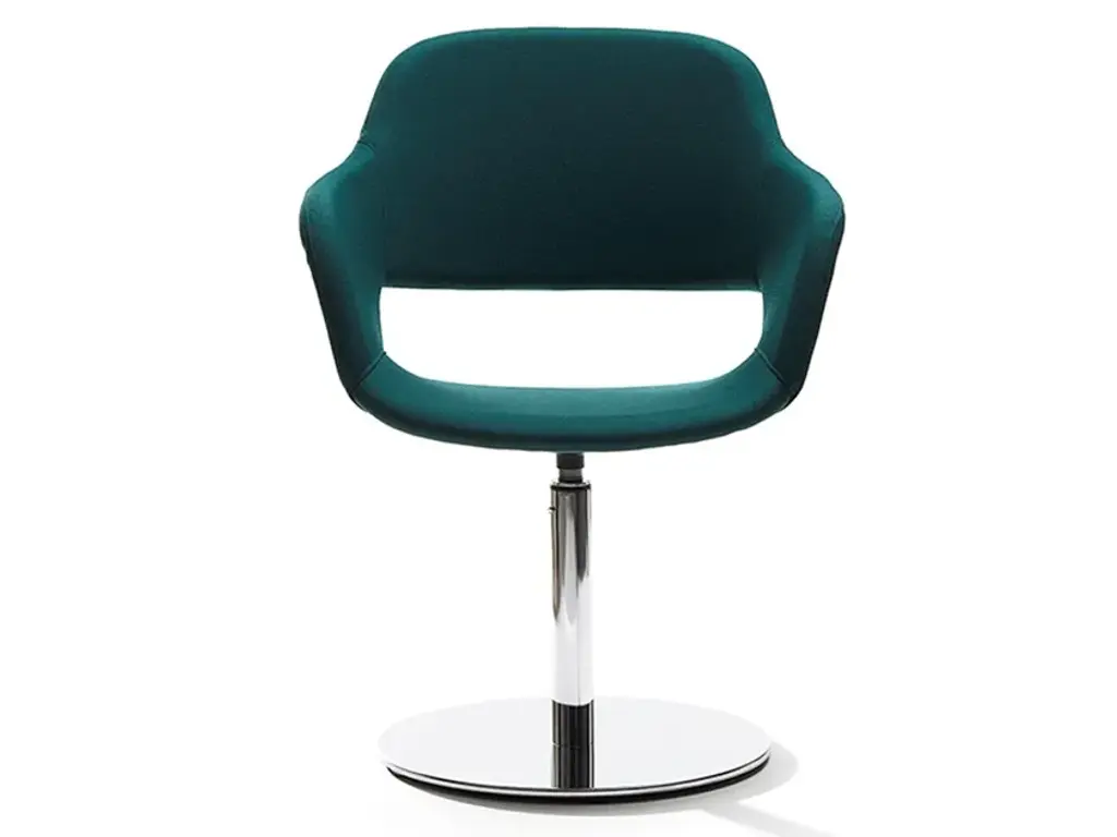Nubia 2911- Swivel high-back leather executive chair with armrests.Nubia - Armchairs monocoque with internal steel frame covered by jniected F.R. foam and fully upholstered.Shell available in 3 sizes.Base available in various versions: steel 4 legs, steel column with chromed round base, steel column with 4 spokes polished aluminium base.Also available swivel version and/or swivel with gas lift.Ideal for: conference rooms, meeting tables, restaurants, break areas, waiting areas.Optional: chrome frame.