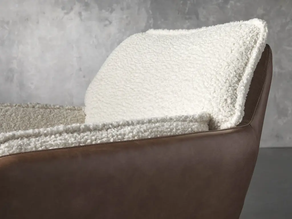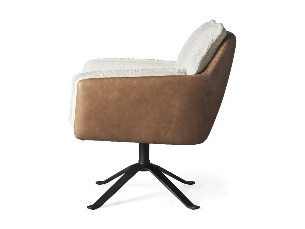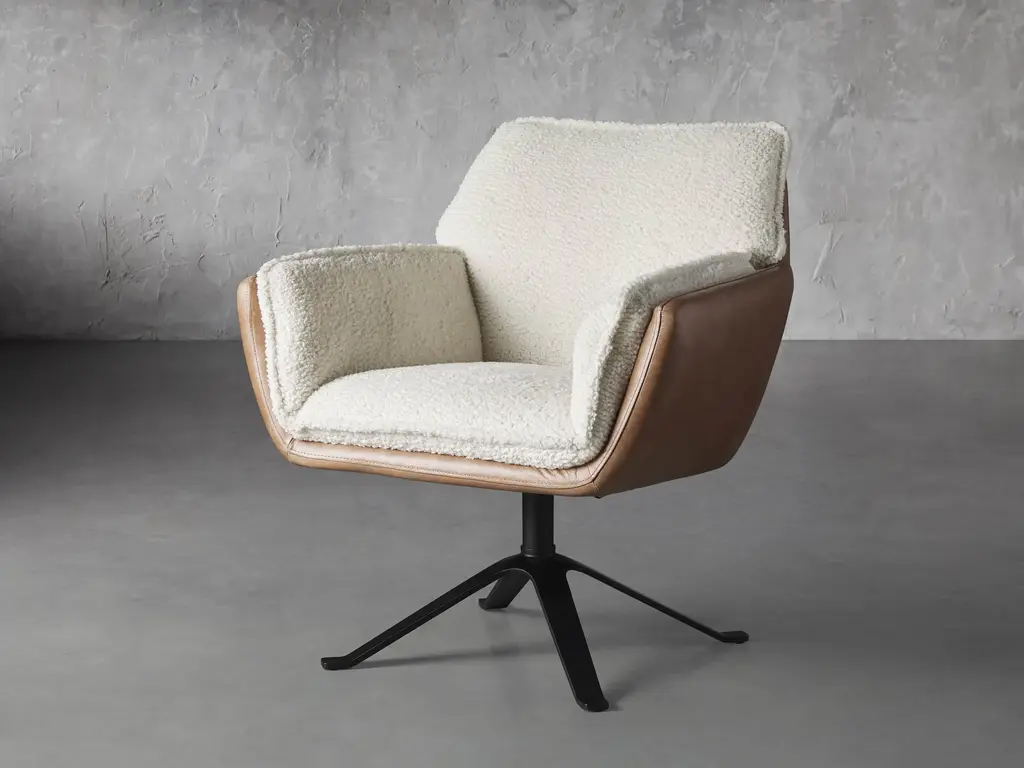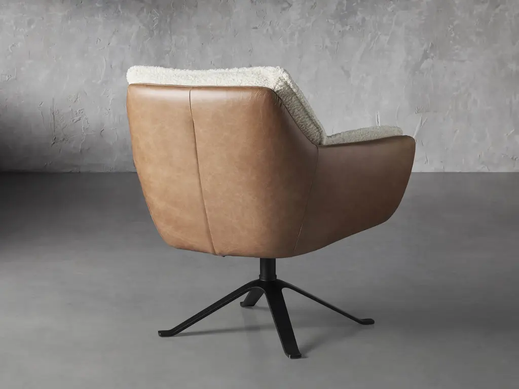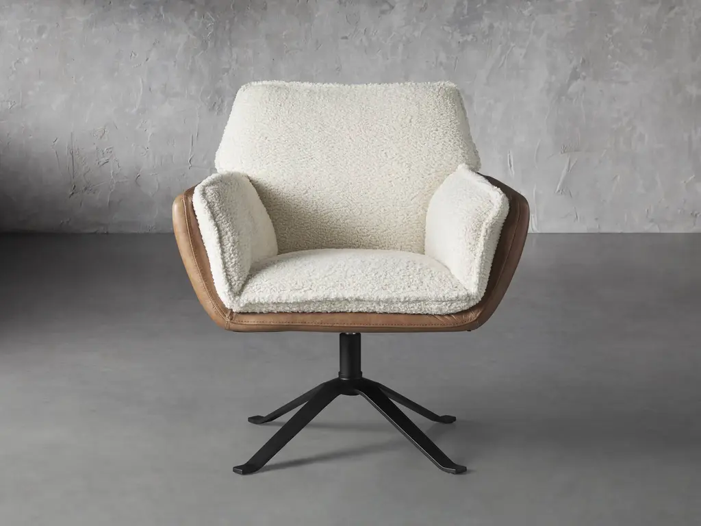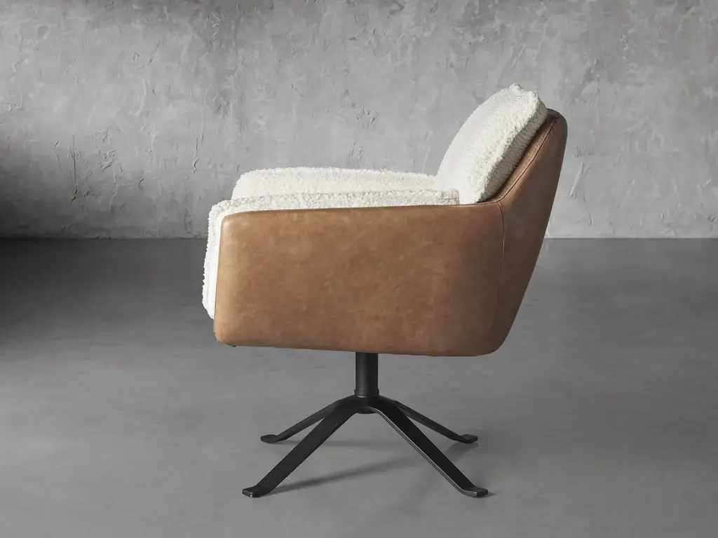 Sophisticated style meets exceptionally inviting comfort in our Nyles Swivel Chair. A generously cushioned seat lined in plush shearling is paired with a rich leather exterior. A metal spider base in a versatile black finish grounds Nyle’s modern design in any space, and a smooth swivel allows for easy positioning.