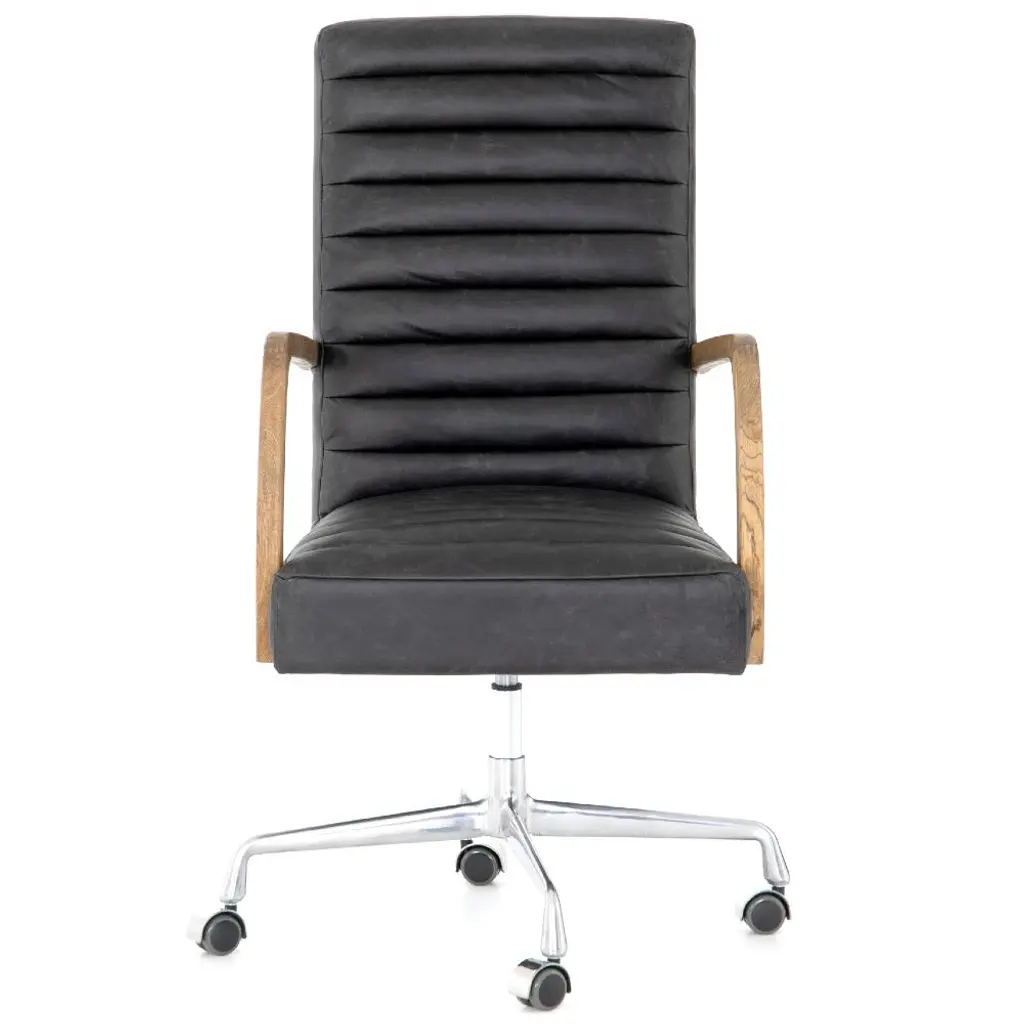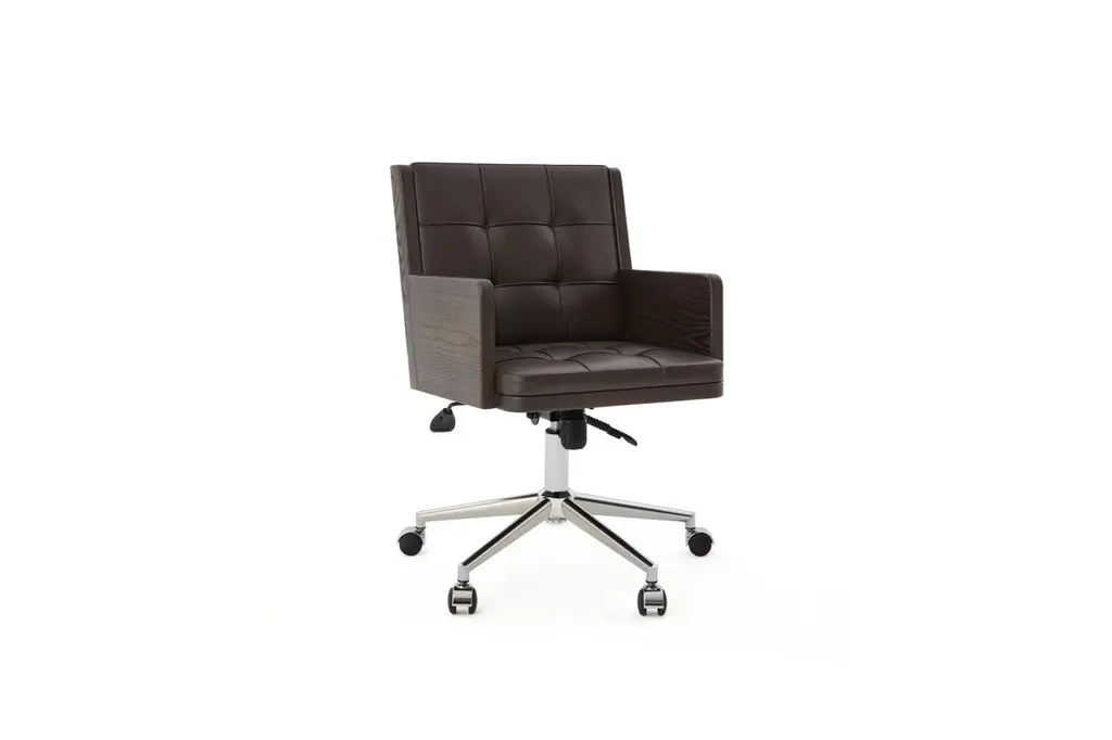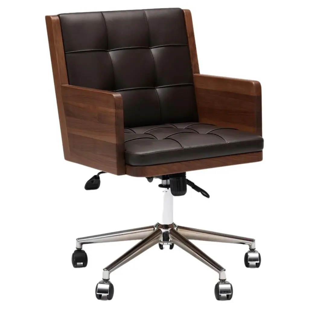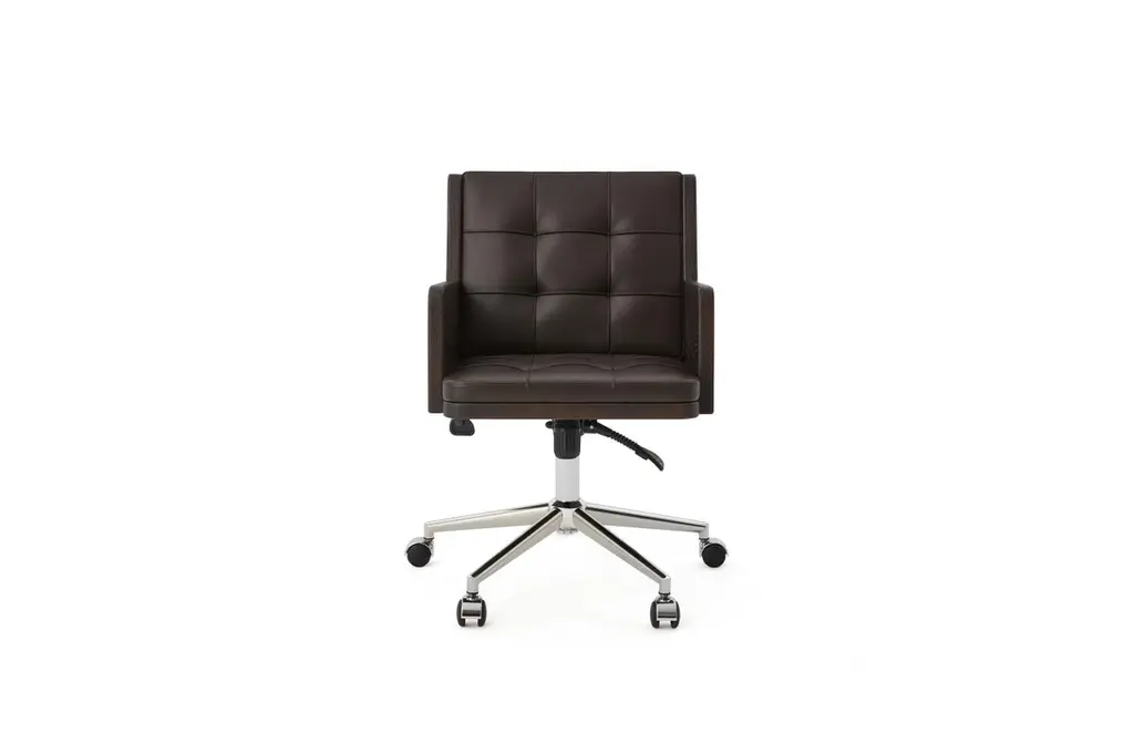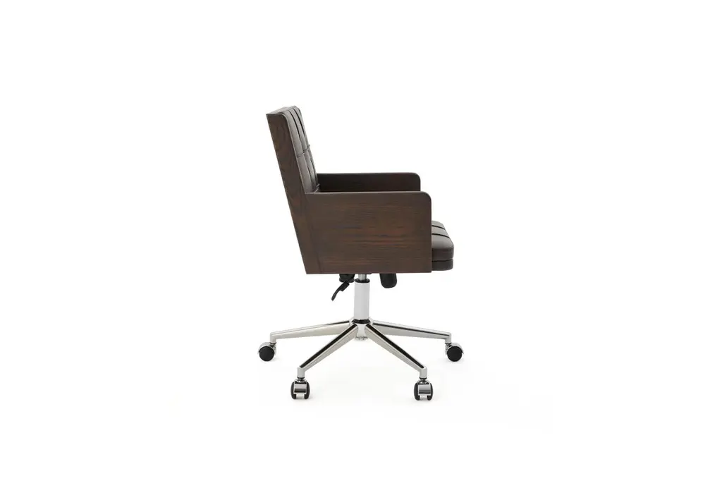 Darwin added wheels to the office chair in 19th century.In the 1970s ergonomics was added to design criteria.Today, it is the key element for whom spends long hours in the office.Office chair consists a solid plywood body, leather upholstery and metal base with bronze/brass finish.