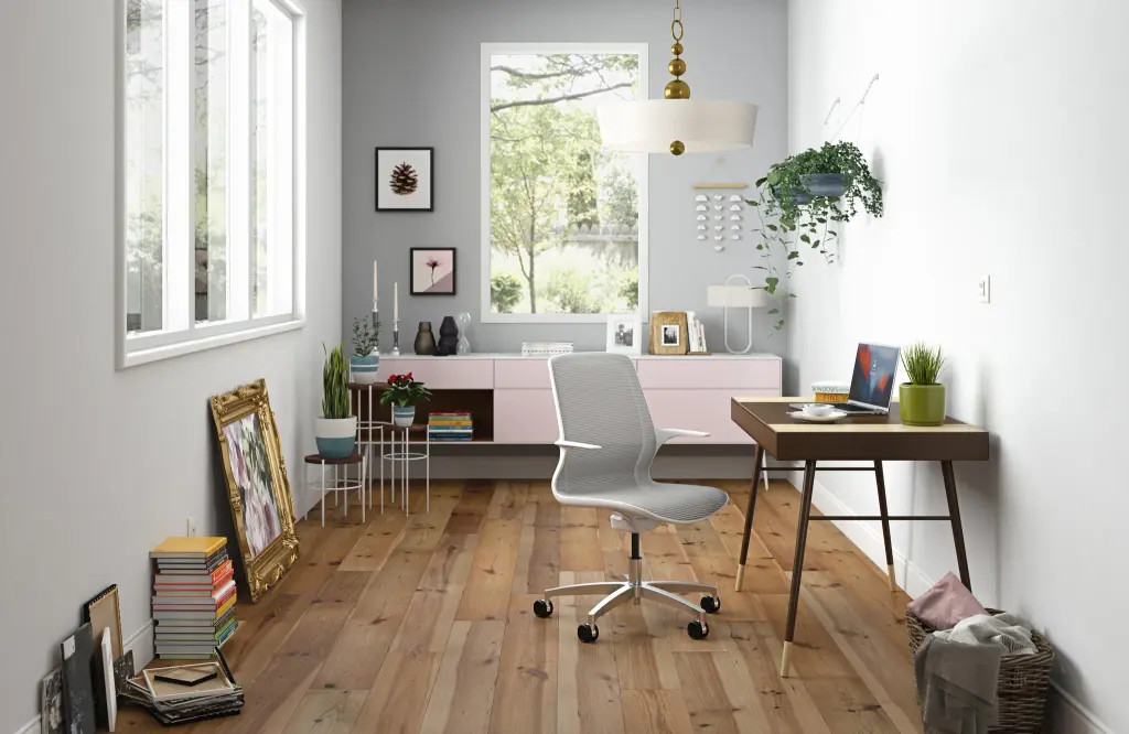 Organic, curved frame features a one-piece mesh seat and back. Adjustments are effortless with an automatic back recline tension adjustment and just two fingertip levers. Black frame has Midnight mesh and a black aluminum base. Winter White frame has Pebble mesh and a polished aluminum base. Weight-balanced control has levers for an upright back lock and pneumatic height adjustment