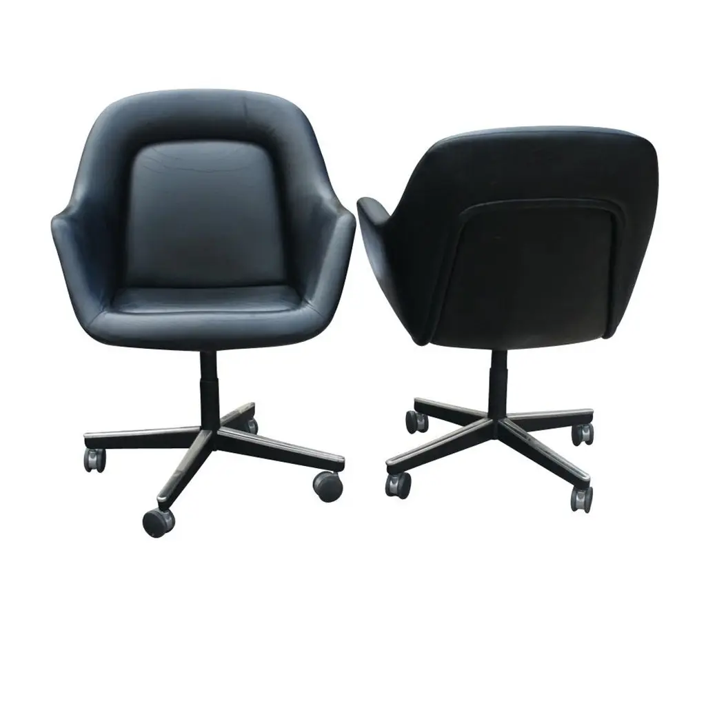 1 mid century modern executive chairs designed by Max Pearson and made by Knoll. Black leather upholstery on four-star bases with casters. 2 available.