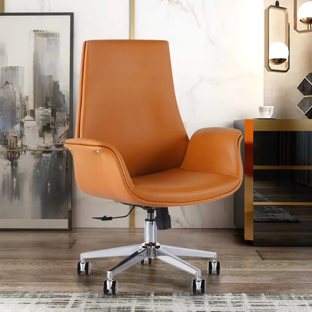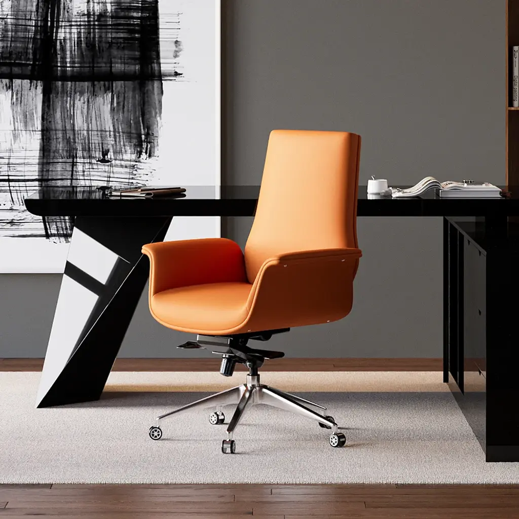 Orange Office Chair For Desk Upholstered Pu Leather Swivel Task Chair