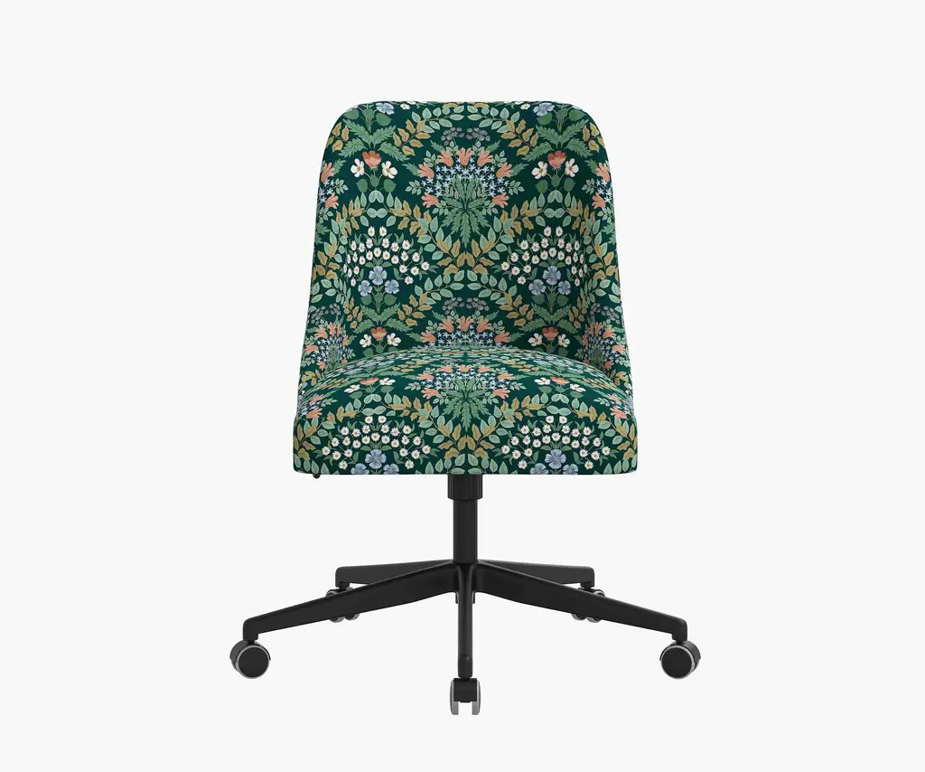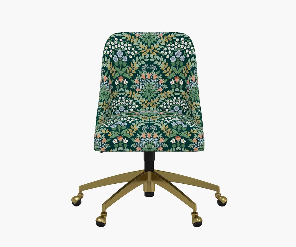 With a curved silhouette inspired by vintage style, the Oxford Desk Chair is as stylish as it is functional. Select from 17 illustrated fabrics and two base colors for your made-to-order piece, crafted in Chicago by Cloth & Company.