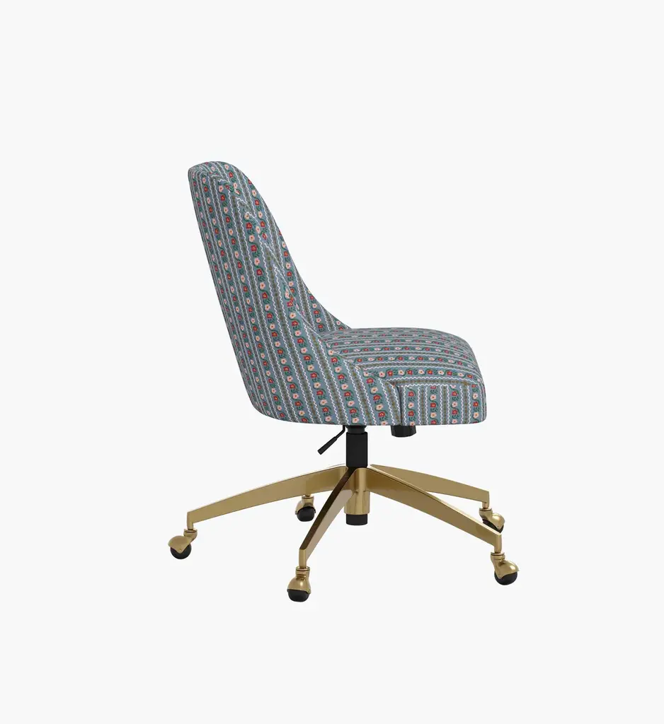 With a curved silhouette inspired by vintage style, the Oxford Desk Chair is as stylish as it is functional. Select from 17 illustrated fabrics and two base colors for your made-to-order piece, crafted in Chicago by Cloth & Company.
