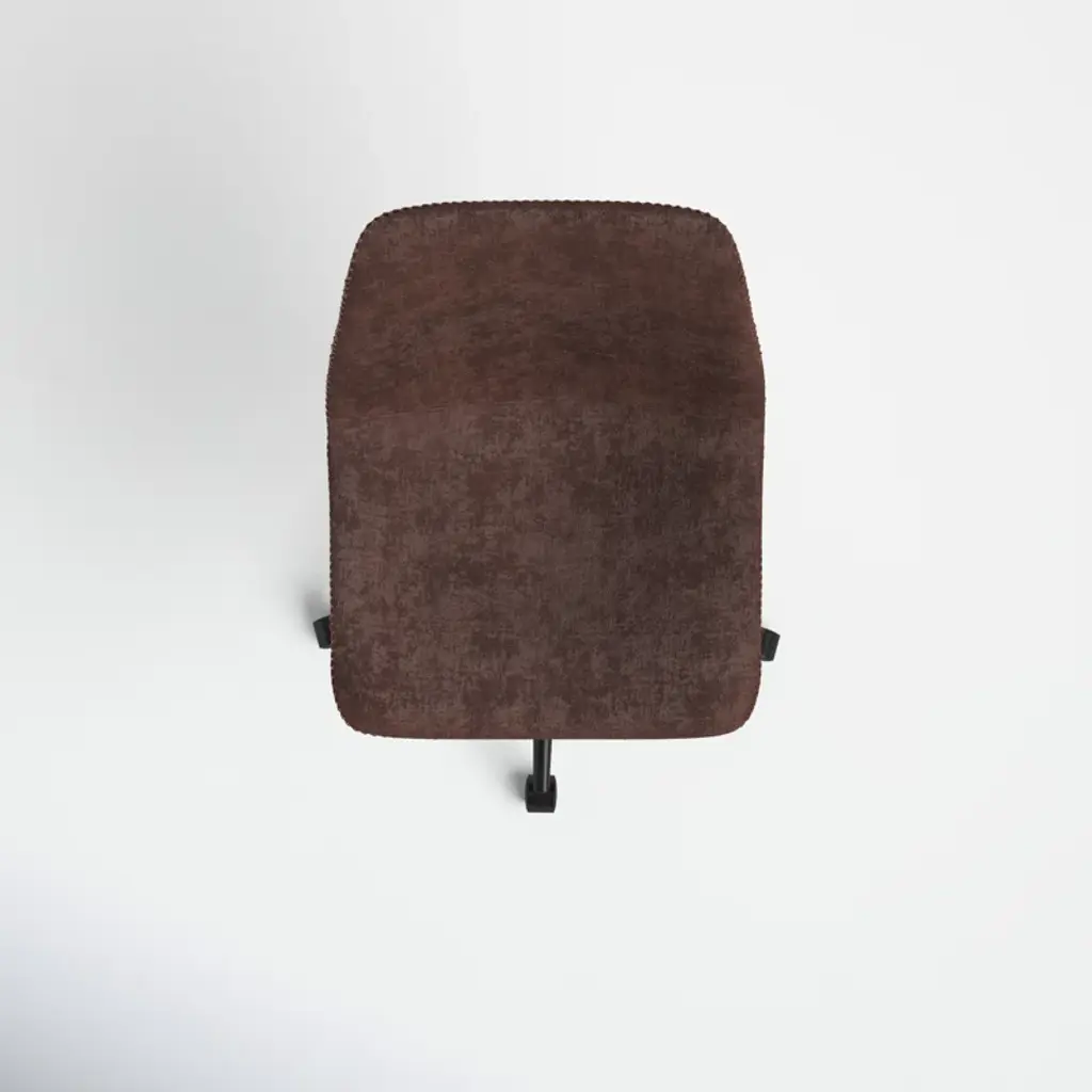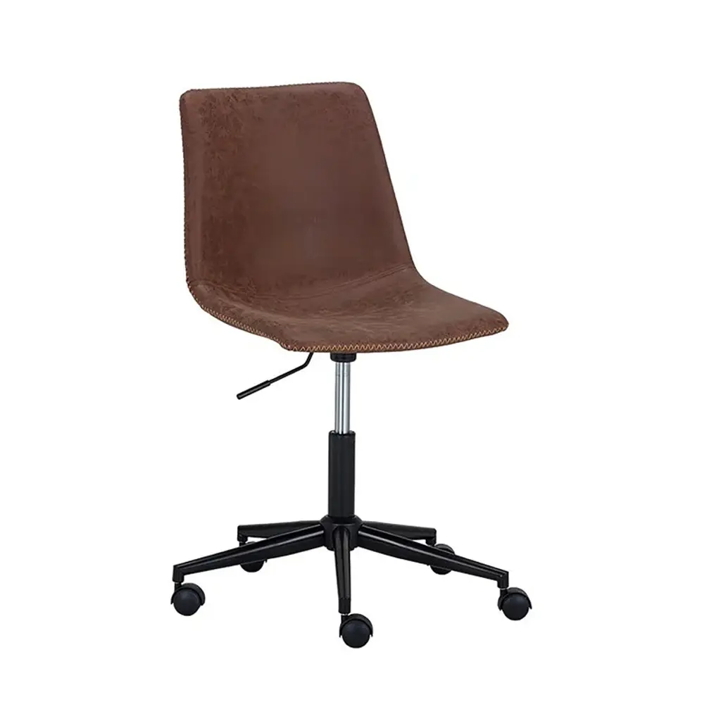 A comfortable and compact office chair. Designed with a simple, mid-century silhouette. Features an adjustable seat and castors for mobility.