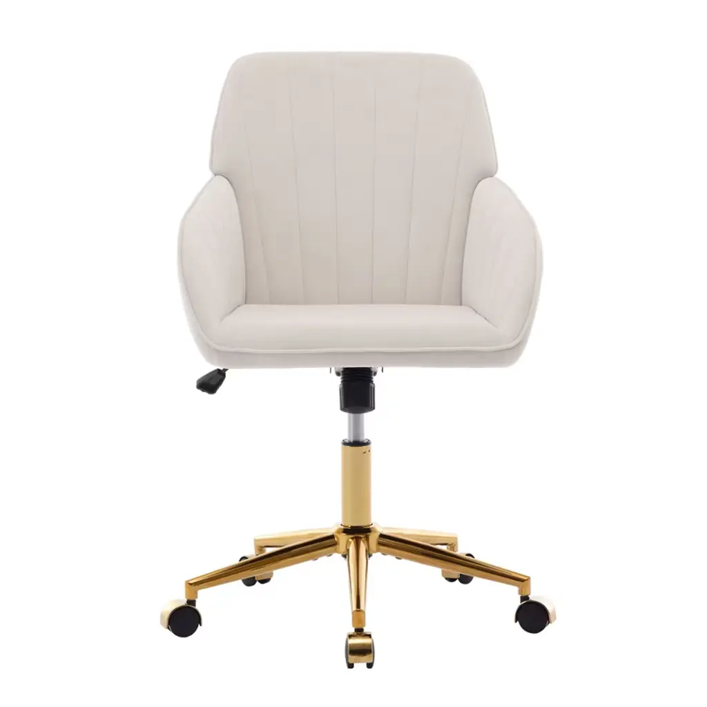 Paged Adjustable Office Chair Ergonomic Swivel Gaming Chair With Elegant Golden Base For Living Room, Home Office, Beige