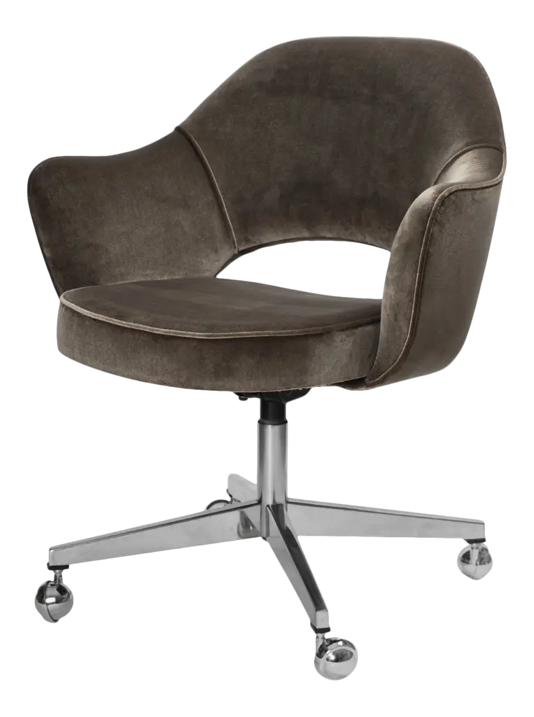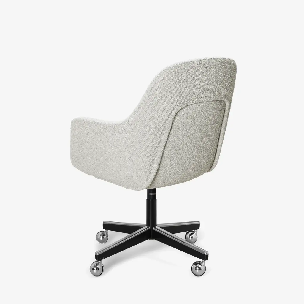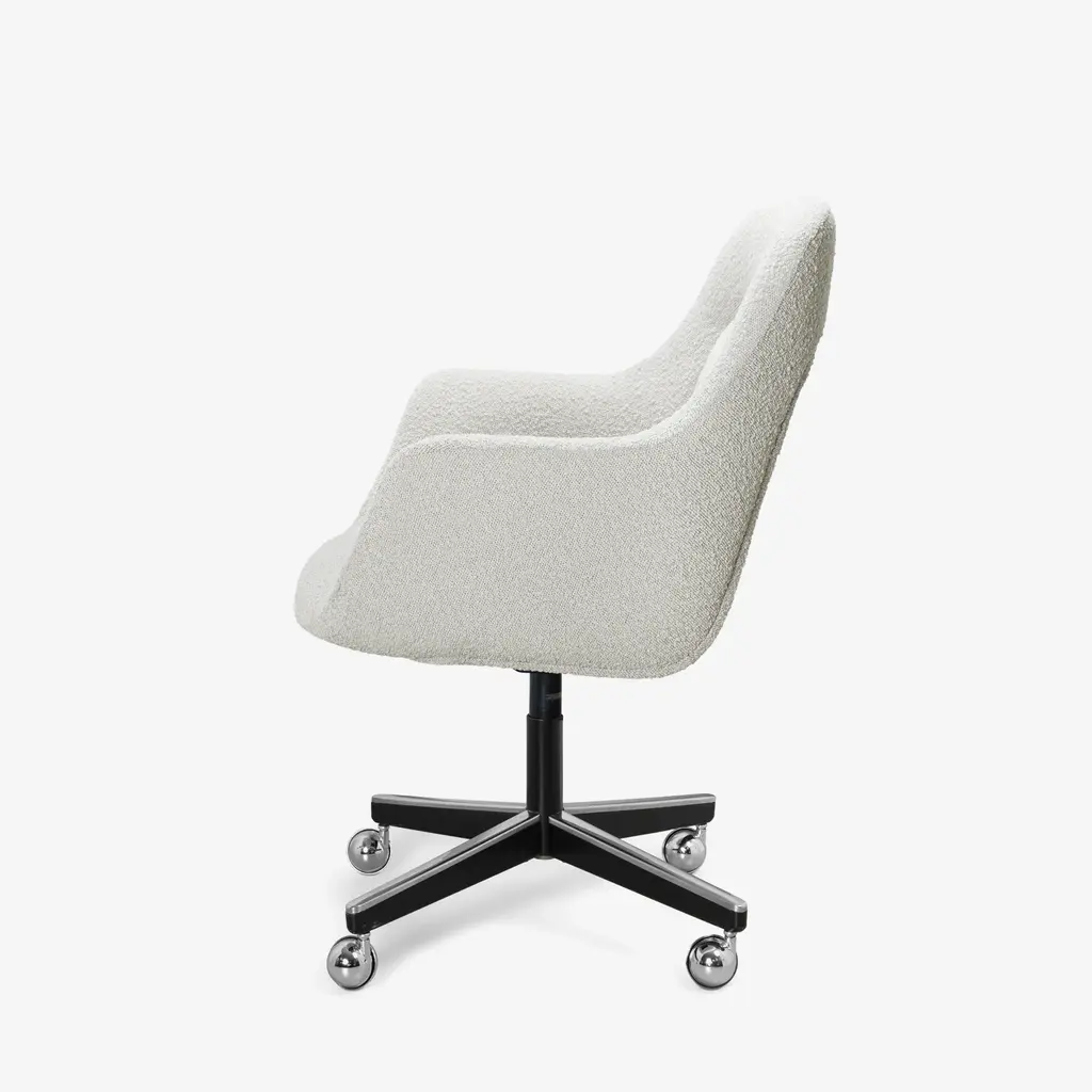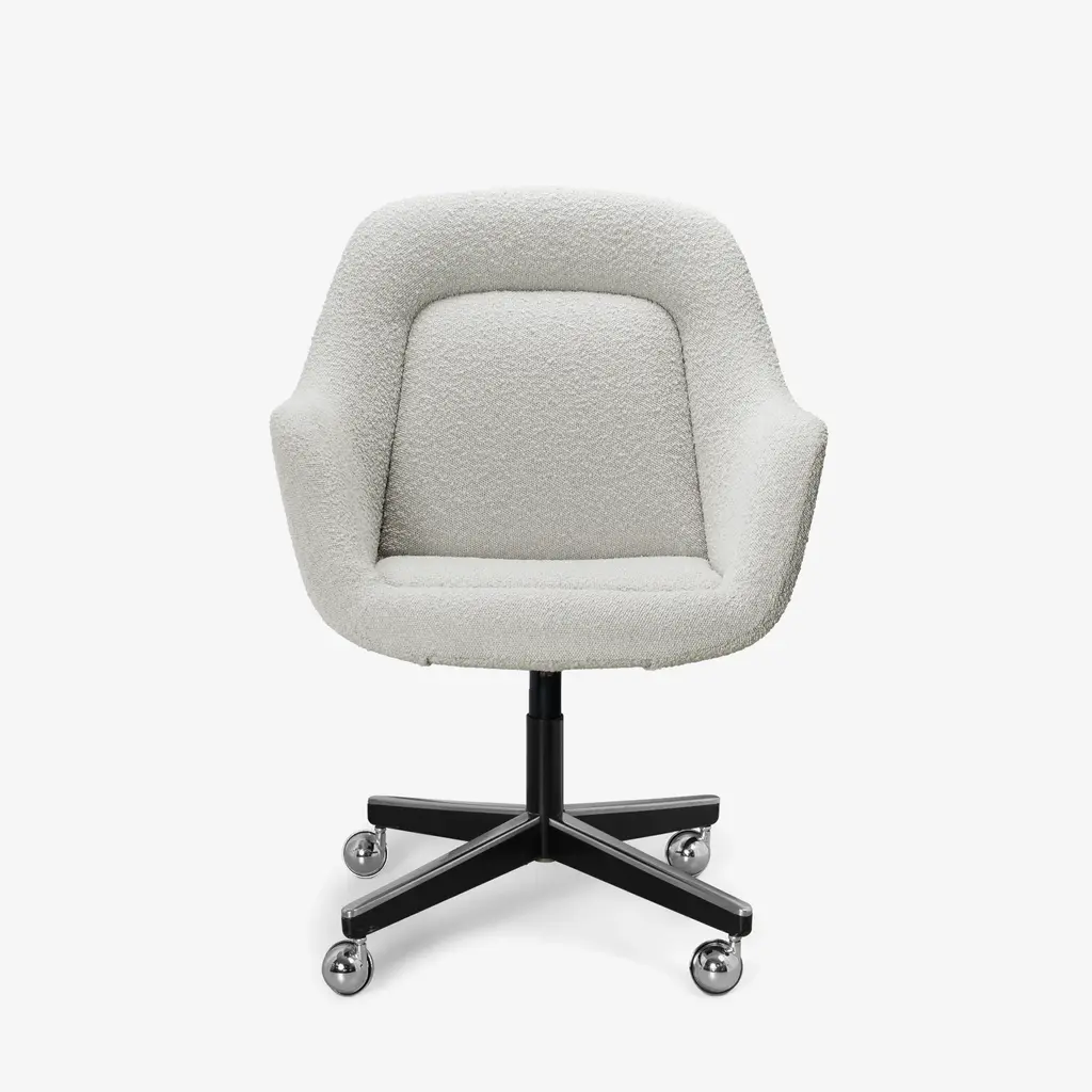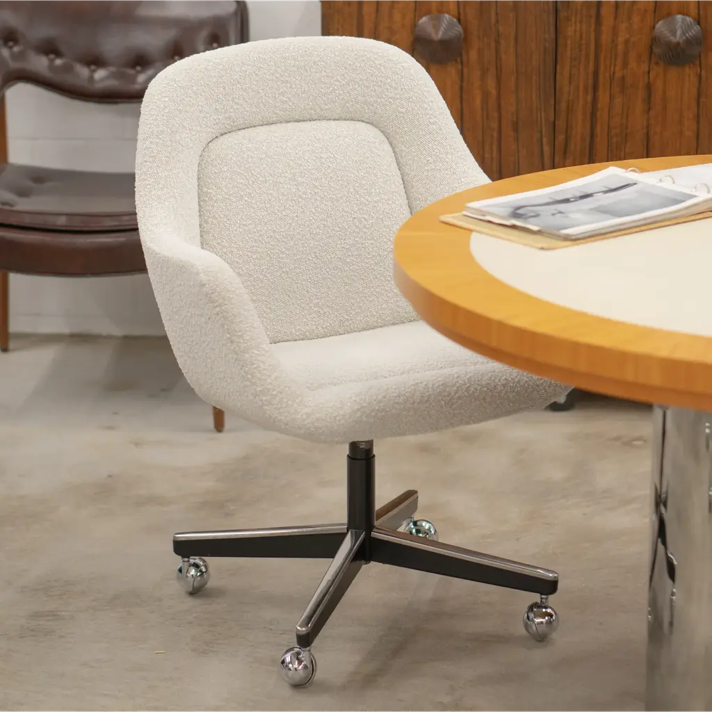 If a single company could be deemed the leading cultivator of iconic designers and incubator of timeless design, it would with little doubt be Knoll. Under Florence Knoll’s lead, she of course having been trained by the great Ludwig Mies van der Rohe, her namesake company became a stable of the best designers of her time. Eero Saarinen, Harry Bertoia, Warren Platner; each Knoll designer would inspire the next generation, and after years of this organic progression we are left with countless rich designs. A handful of notable Knoll designs have since been discontinued, they remain encapsulated in their time and have not seen modern day reproduction. Such is true with Max Pearson’s 1966 Seating Collection from which we have this Pearson Executive Chair. The Pearson Executive Chair draws inspiration from the Executive Chairs of both Eero Saarinen as well as Charles Pollock. As it is no longer in production, it’s not nearly as ubiquitous as the chairs of his predecessors. We find Pearson’s design to be the epitome of organic form and somewhat of a “hidden gem” - lovers of design from this era would consider Pearson’s chair a unique and offbeat addition to their collections, the piece that no one else has. The Object Refinery team has spent hours of time examining this chair by bringing it down to its frame. We are now capable of restoring these chairs and offering them in near-new condition using a plush Performance Bouclé in two colors; Snow & Platinum. The Bouclé makes this chair suitable for the home environment in an era where the home office is just as important as the Mid-Century’s classic office environment. Pearson’s Executive Chair is equipped with tilt, swivel, and manual height adjustment. We have a large quantity of these available and can accommodate orders of sets.