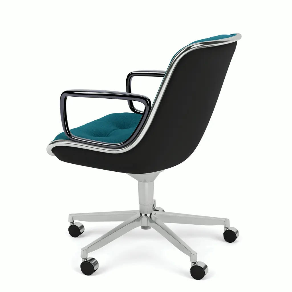 The Pollock Executive Chair features what the designer described as "rim technology"—the use of a single aluminum band around the chair's perimeter to hold the design together, structurally and visually. Fifty years after its introduction, the Pollock Chair continues to exude timeless elegance in any home office.
