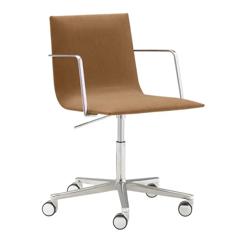 The Pollock Executive Chair features what the designer described as "rim technology"—the use of a single aluminum band around the chair's perimeter to hold the design together, structurally and visually. Fifty years after its introduction, the Pollock Chair continues to exude timeless elegance in any home office.