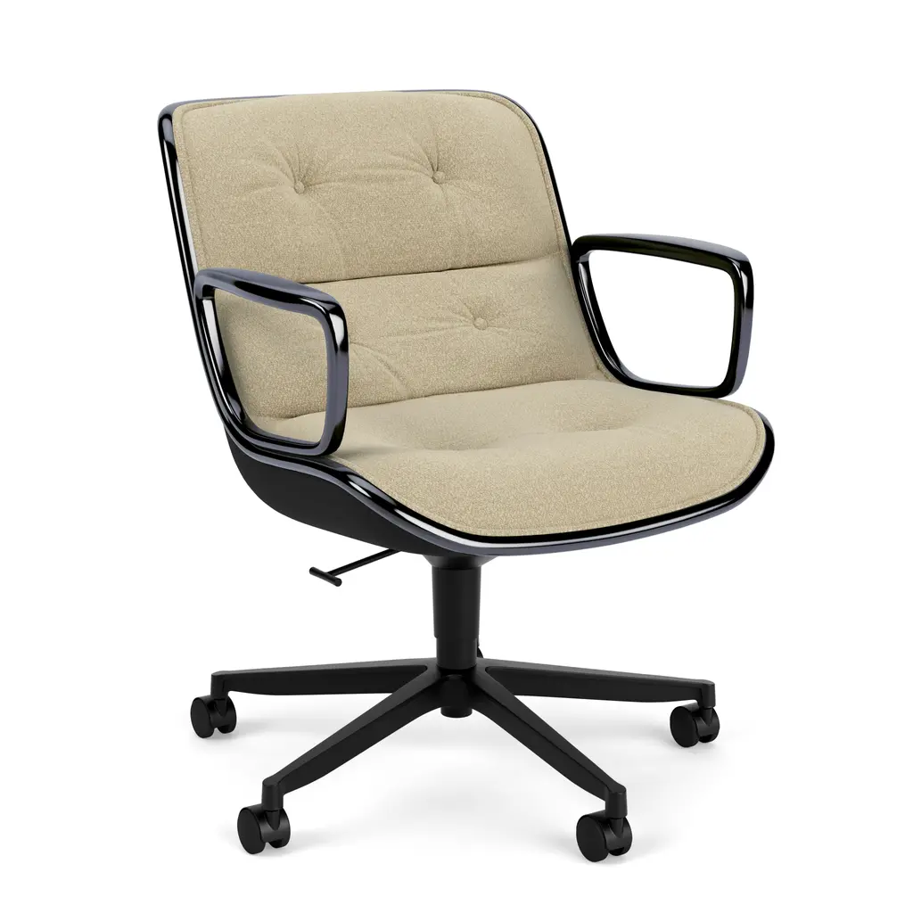 The Pollock Executive Chair features what the designer described as "rim technology"—the use of a single aluminum band around the chair's perimeter to hold the design together, structurally and visually. Fifty years after its introduction, the Pollock Chair continues to exude timeless elegance in any home office.