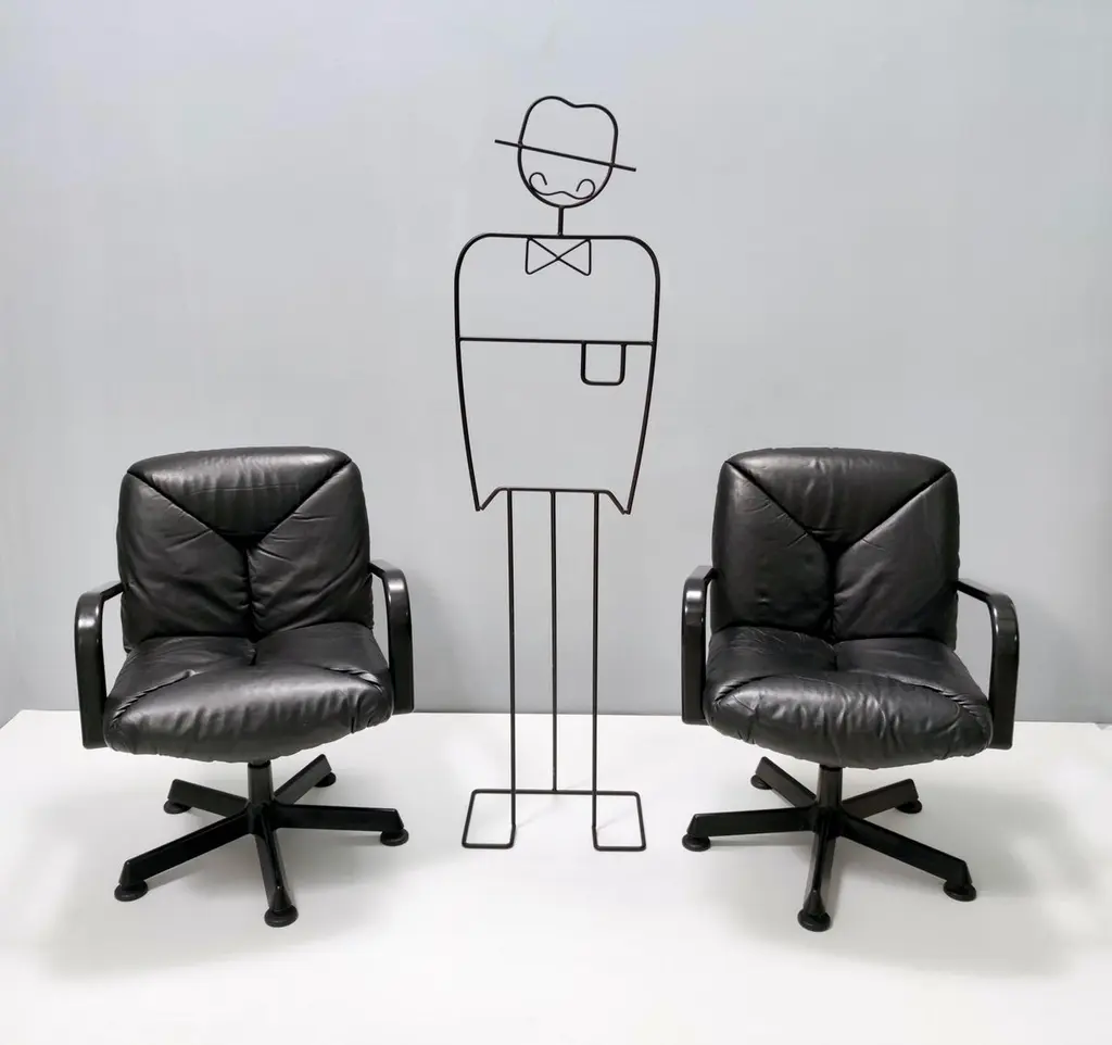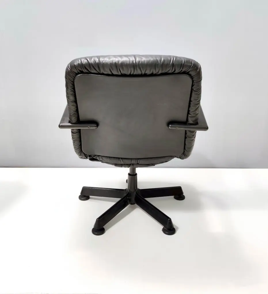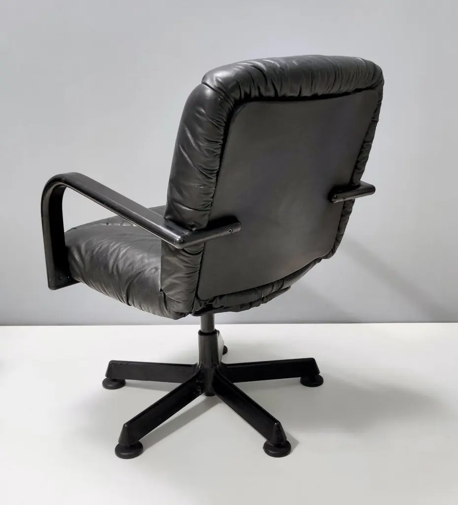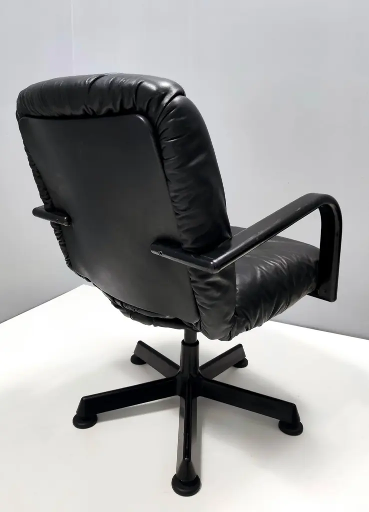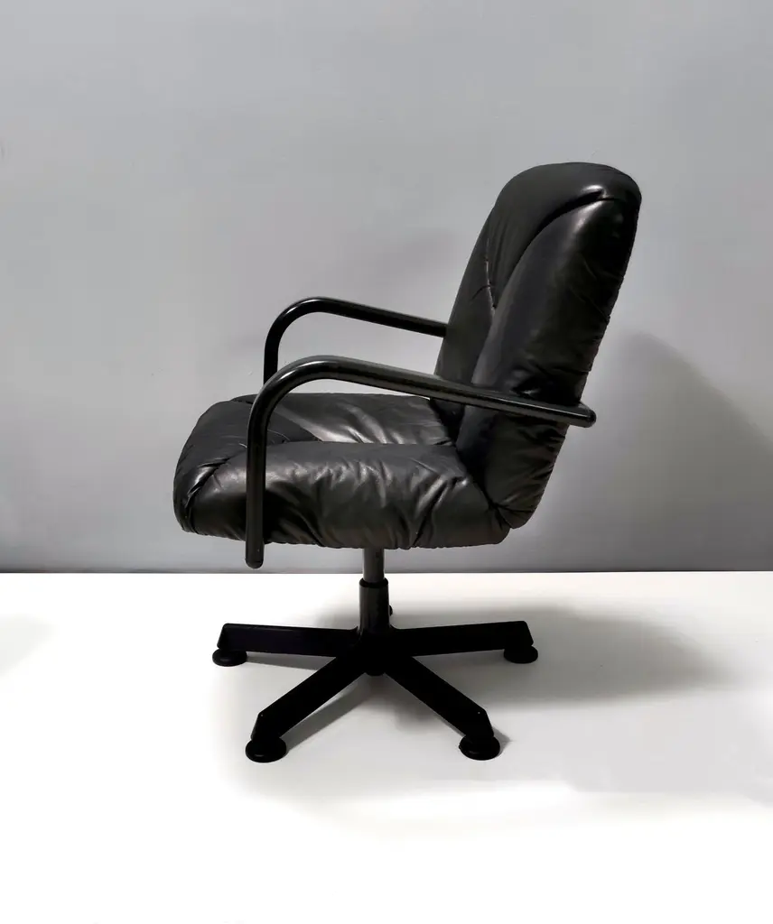 Postmodern Black Leather Office Chair By Vico Magistretti For Icf Design, 1978