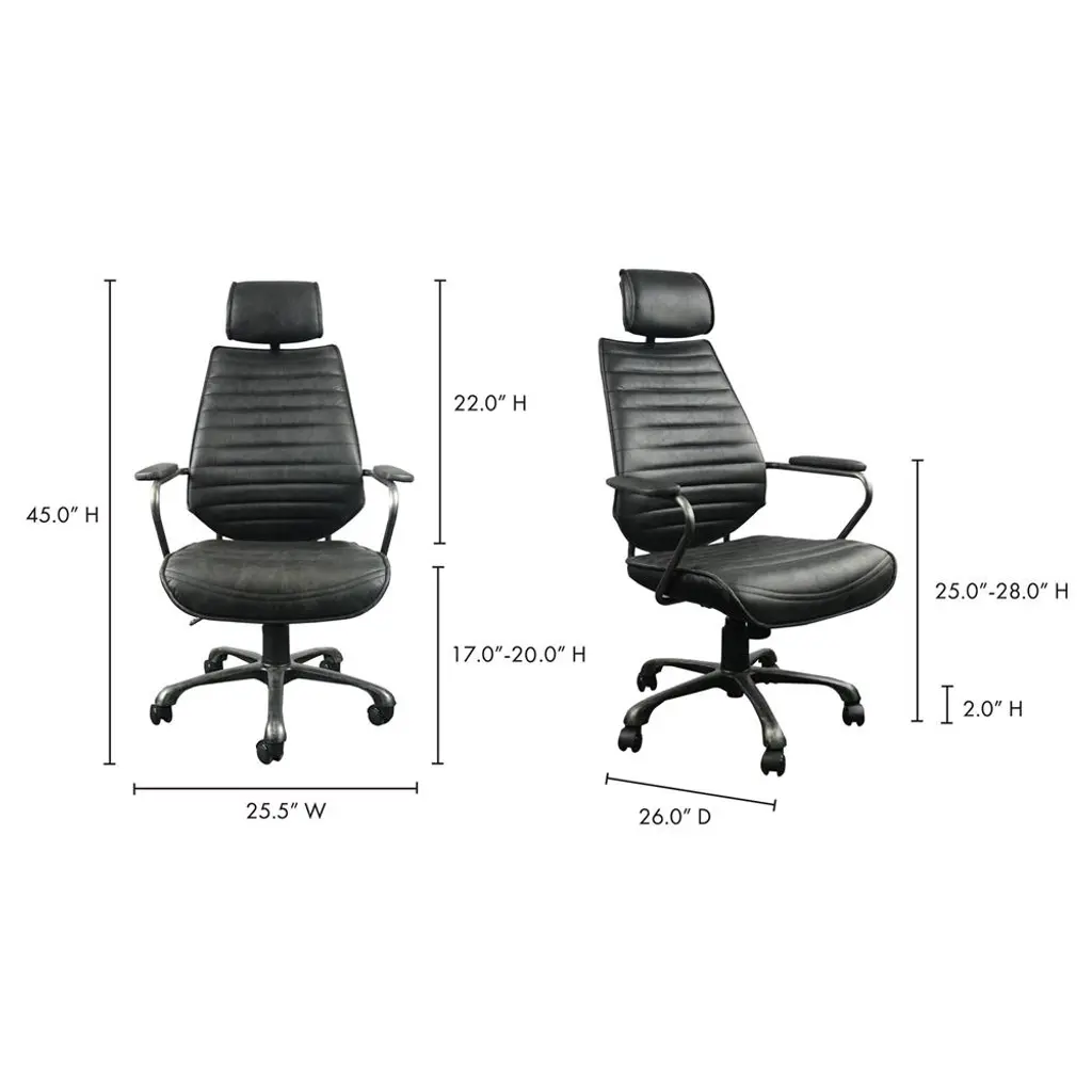 Reid Industrial Tufted Black Upholstered Silver Iron Adjustable Office Chair