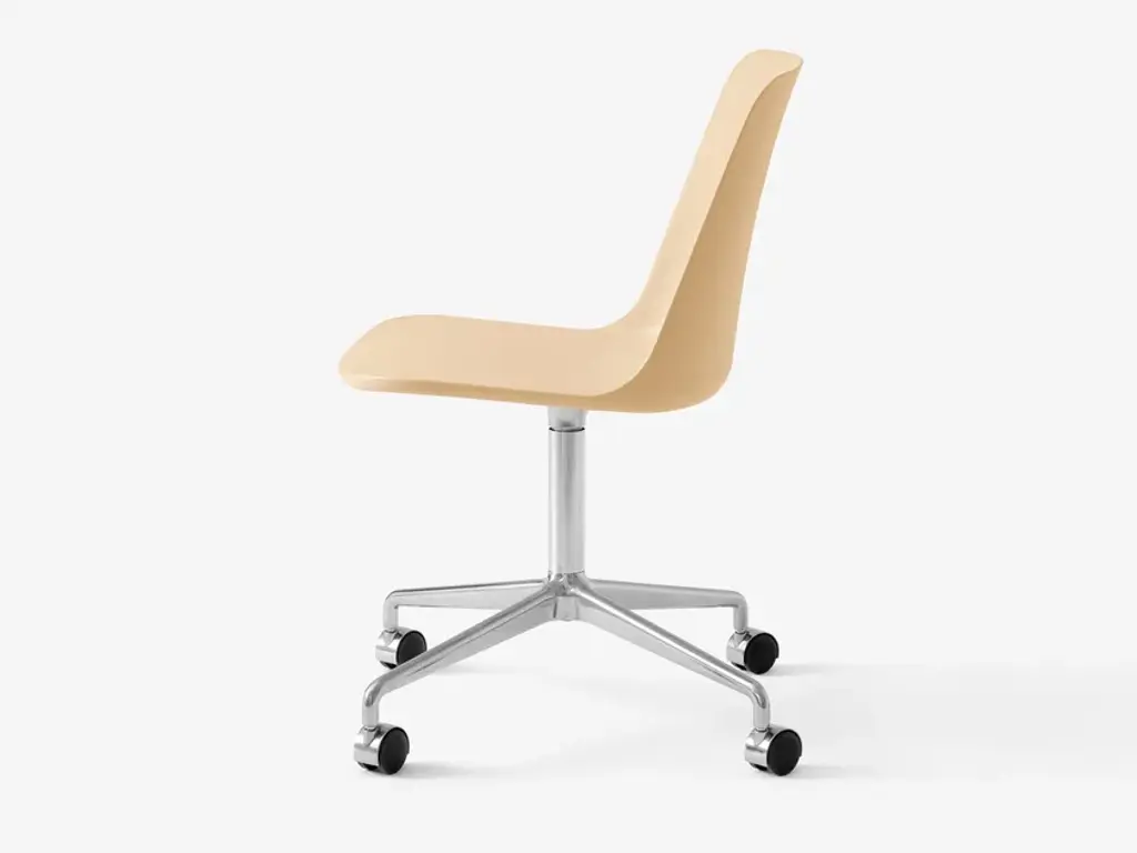 Boasting a shell crafted from 100% recycled plastic, Rely is a chair with environmentally-friendly credentials. Designed by Hee Welling, its simple appearance and ergonomic design embodies his signature fusion of minimalism and practicality. The shell is available in a range of contemporary colours.Production ProcessShell made from 100% recycled polyprolene with fiber glass. Aluminium swivel base with castors.EnvironmentIndoorMaterialsShell is polyproplylene with 15% glassfibre.The swivel base is made from extruded aluminum, that is polished or powder coated. This product has not been treated with any biocides.Plastic coloursBlackWhiteRed BrownLight BlueBeige SandStone GreyBase finishesPolished AluminiumBronzedBlackGlidersPlastic gliders are installed as standard. Felt gliders are available upon requestStrength, Durability and Safety TestingThe chair is tested for strength, durability and safety according to: – EN 16139 Level 2 – Extreme use.