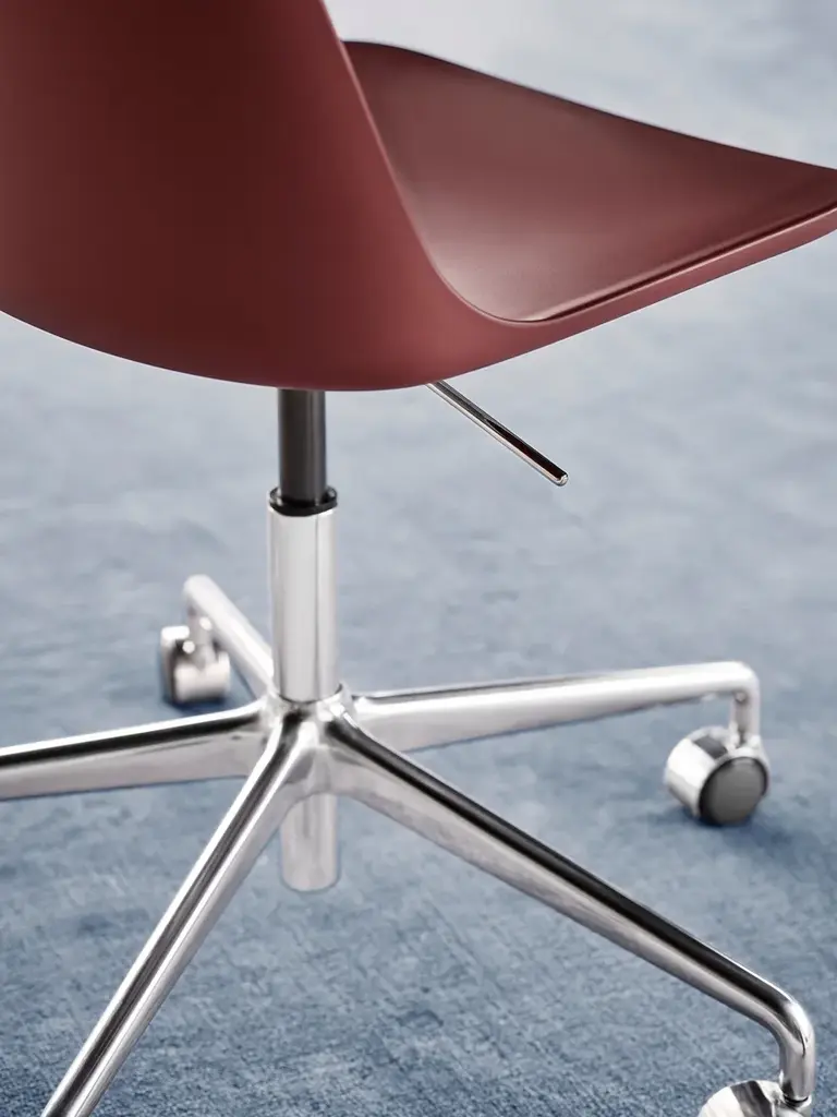 Boasting a shell crafted from 100% recycled plastic, Rely is a chair with environmentally-friendly credentials. Designed by Hee Welling, its simple appearance and ergonomic design embodies his signature fusion of minimalism and practicality. The shell is available in a range of contemporary colours. The chair is now offered with a five-star base with gaslift and castors.EnvironmentIndoorProduction ProcessShell made from 100% recycled polyprolene with 15% fiber glass. The 5-star swivel base with gaslift & castors is made from extruded aluminium, which is polished or powder coated. Seat pad available upon request.MaterialsPolyproplylene, glass fiber, polished or powder coated aluminium, upholstery.Base Finishes5-star aluminium swivel base w. castors & gasliftPolished aluminium or BlackMatching castors onlyShell ColoursBlackWhiteRed BrownLight BlueBeige SandStone GreyHW28: No upholstery. Seat pad available in all fabrics, leathers and COMStrength, durability and safety testingThe chair is tested for strength, durability and safety according to: – EN 16139 Level 2 – Extreme use.