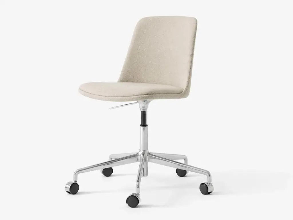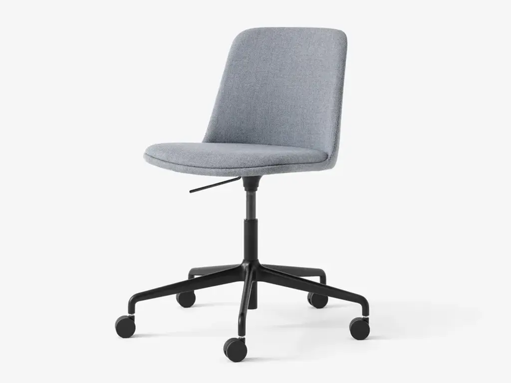 Boasting a shell crafted from 100% recycled plastic, Rely is a chair with environmentally-friendly credentials. Designed by Hee Welling, its simple appearance and ergonomic design embodies his signature fusion of minimalism and practicality. Upholstery for the shell is available in a variety of fabrics. The chair is now offered with a five-star base with gaslift and castors.EnvironmentIndoorProduction ProcessShell made from 100% recycled polyprolene with 15% fiber glass. The 5-star swivel base with gaslift & castors is made from extruded aluminium, which is polished or powder coated. Upholstered seats are made with a veneer plate with 30mm foam.MaterialsPolyproplylene, glass fiber, polished or powder coated aluminium, upholstery.Base Finishes5-star aluminium swivel base w. castors & gasliftPolished aluminium or BlackMatching castors onlyHW31: Shell + seat upholstery available in all fabrics, leathers and COM (mono upholstery)Strength, durability and safety testingThe chair is tested for strength, durability and safety according to: – EN 16139 Level 2 – Extreme use.