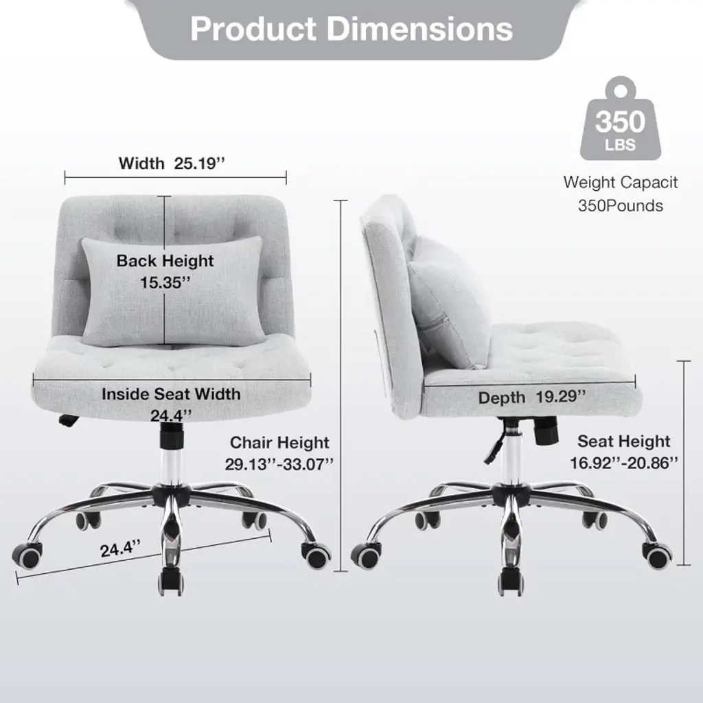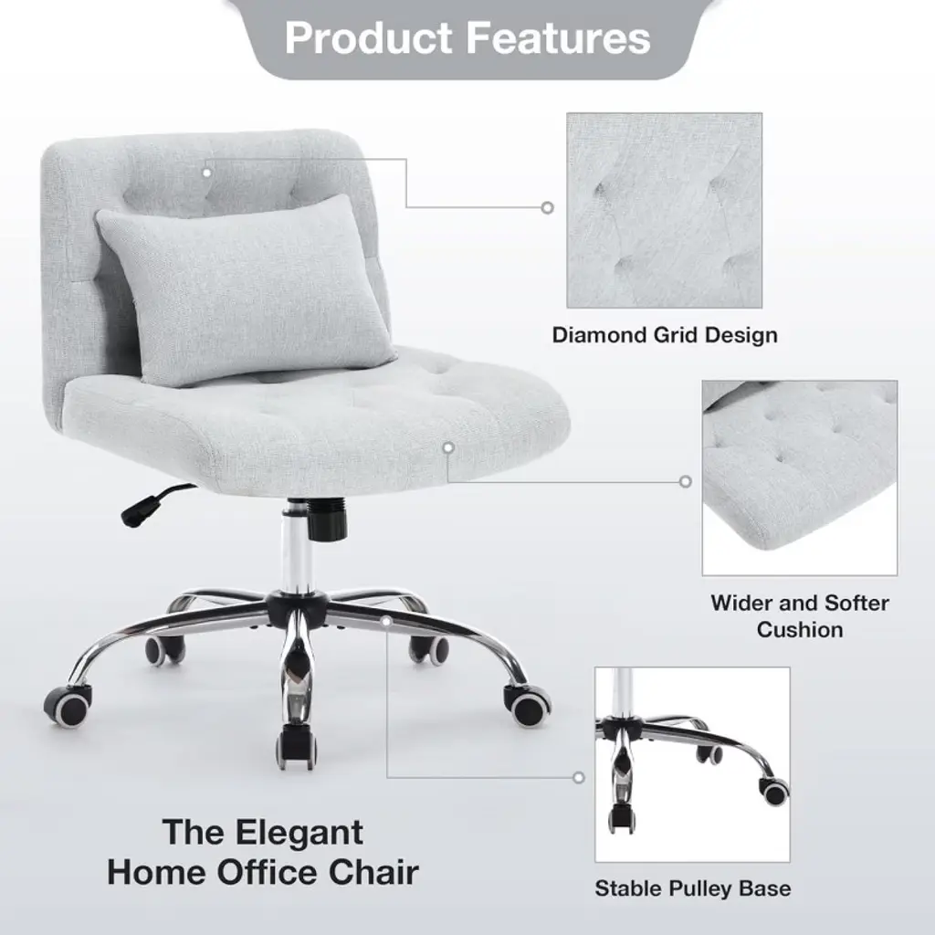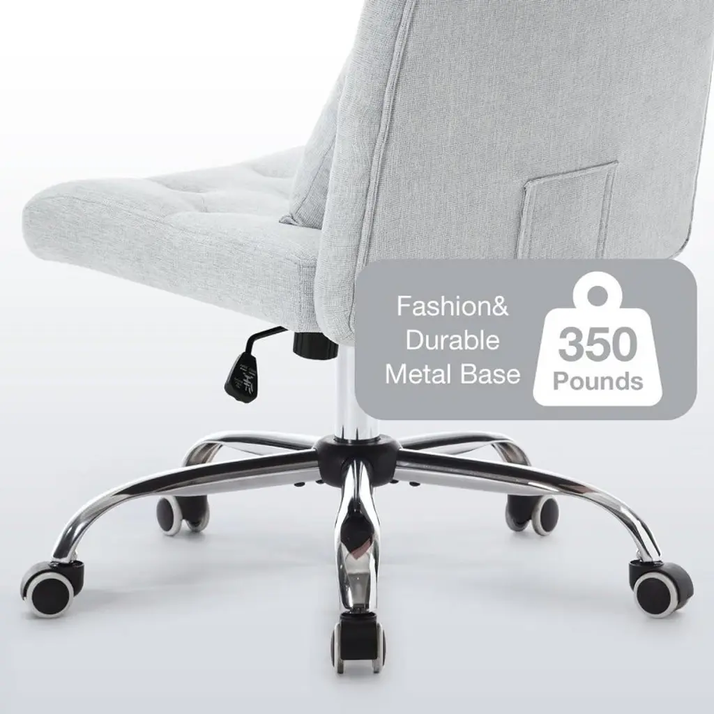 Risokeys Armless Fabric Office Desk Chair With Wheels,modern Home Office Chair With Lumbar Pillow, Comfy Computer Task Chair For Small Space,gray
