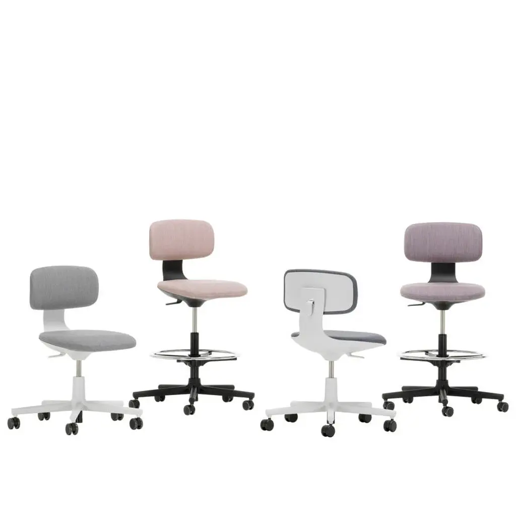 Rookie High translates the advantages of the Rookie office chair to standing table height. Pleasantly comfortable, it adapts quickly and easily to each user with the aid of minimal elements and functions. The ability to alternate between sitting and standing postures at office desks and in meetings ensures optimum ergonomics – and when it is the user that changes position, rather than the table top, the action is spontaneous and dynamic. The seat, backrest and steel foot ring are vertically adjustable, and the latter serves as a practical support when sitting or standing. This makes Rookie High an excellent choice for any environment in which people wish to engage at eye level, whether they are seated or not – for example in offices and meeting rooms or at touch-down workstations.