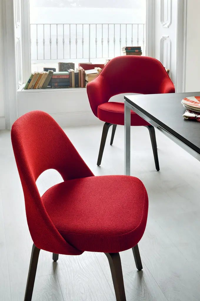 The Saarinen Executive Chair, which is now found in dining rooms as often as it is in offices, transformed the notion of what executive seating could be with its sculptural form and modern finishing.Featured in nearly all Florence Knoll-designed interiors, the Saarinen Executive Chair remains one of the most popular Knoll designs. Introduced in 1950, the chair brought elegance and comfort to the then-drab world of executive seating. With its timeless shape, graceful curves, and balanced proportions, the Saarinen Executive Chair is now just as likely to be found in dining rooms as it is in offices.