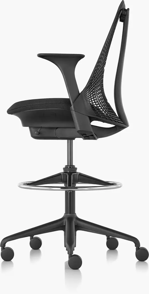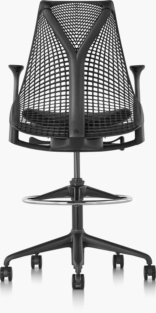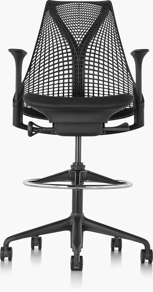 Taking design cues from suspension bridges, the Sayl Stool offers maximum support using minimal materials. Its ventilated back promotes airflow, while the contoured seat cushion provides comfort for extended periods of sitting. Harmonic Tilt technology enables a continuous sense of balance for a wide range of movement. Available with or without arms.
