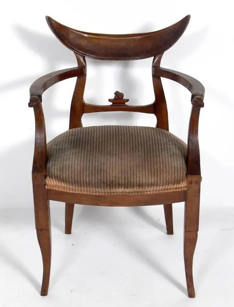 Selection of Hollywood Regency Desk Chairs, 20th Century.From top to bottom, left to right, they are:1) Thonet bentwood chair, circa 1920's. It measures 38.5"H x 17.5"W x 17.25"D x 18" seat height and is SOLD.2) Horned Italian armchair, Italy, circa 1950's. It measures 33"H x 21"W x 16"D x 18" seat height and is SOLD. 3) Brass Chiavari chair, Italy, circa 1950's. It measures 36.25"H x 15.25"W x 14.5"D x 19.5" seat height and is priced at $650. 4) Drexel "X" chair, American, circa 1950's. It measures 29.5"H x 21"W x 19"D x 18" seat height and is priced at $650.