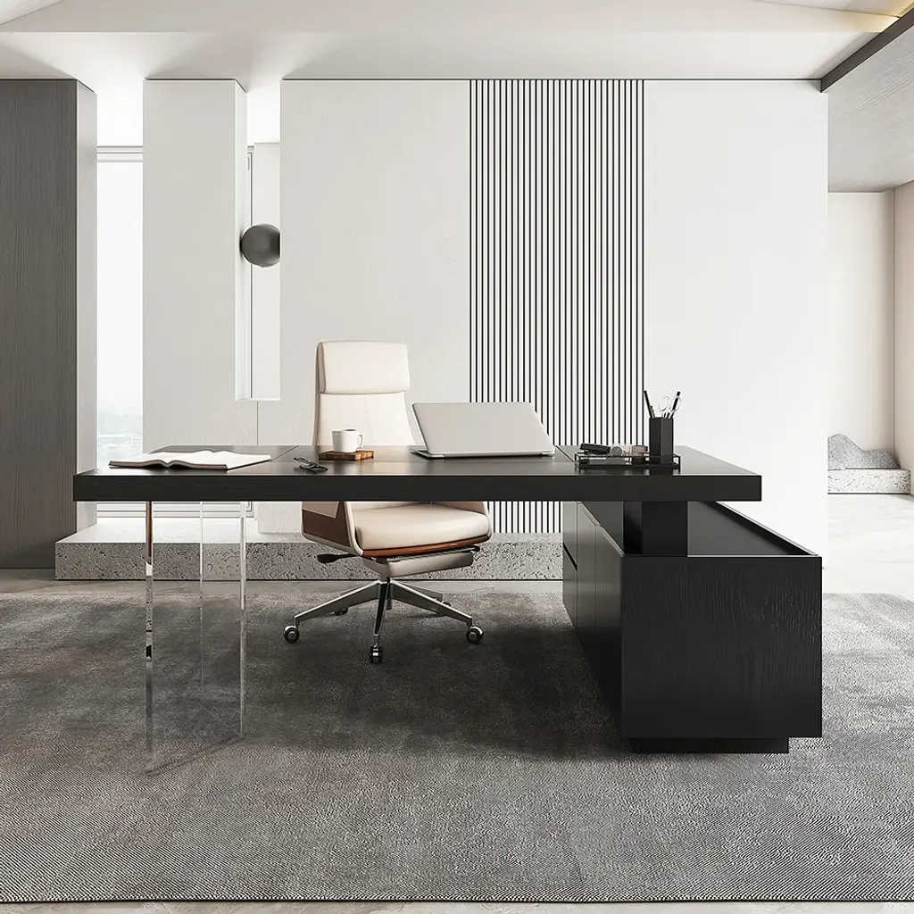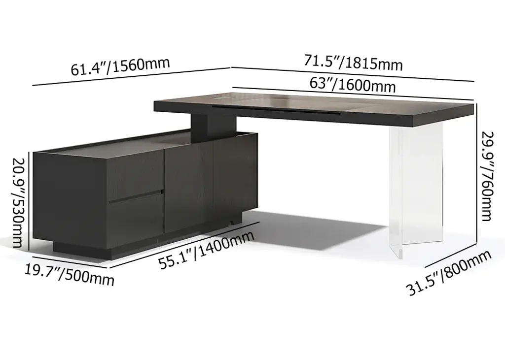 The Vertical L-Desk combines modern design with durability and function. Made from engineered wood and acrylic, it resists warping and ensures lasting performance. Its lift-top desktop lets you switch between sitting and standing, promoting better health, while spacious cabinets and drawers provide ample storage. Perfect for a stylish, organized home office.