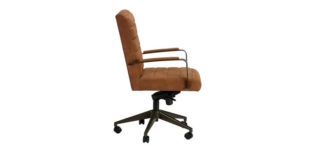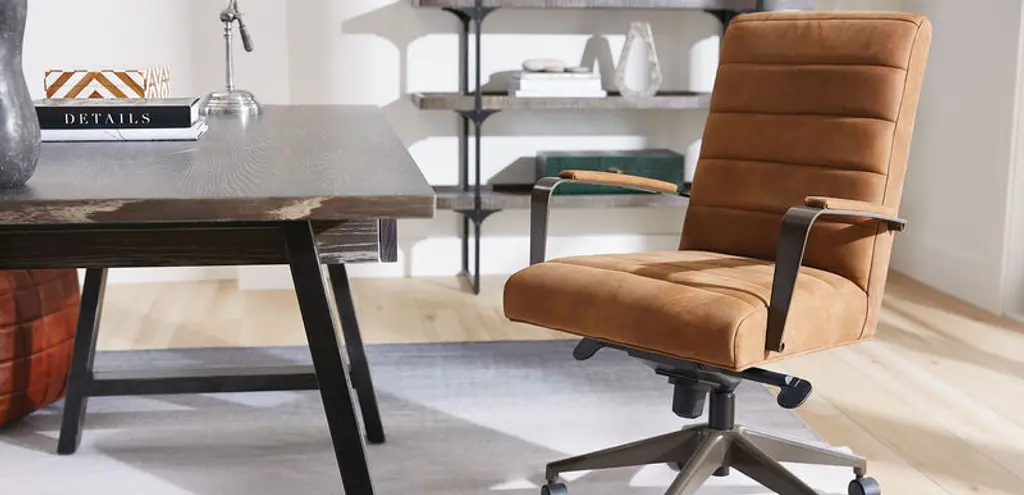 Schedule your own industrial revolution. With its tailored channel stitching, tight seat, industrial-inspired rolling metal base, and luxe leather upholstery, the Slater adjustable channel-back desk chair will take your productivity to new heights.