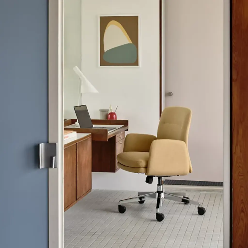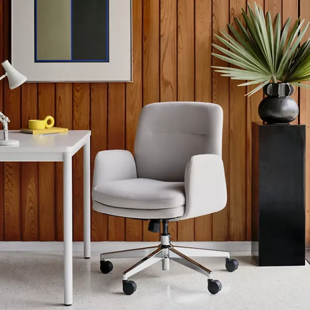 The Softside Task Chair from Branch brings plush, ergonomic support to the modern workspace or home office. Designed with all-day comfort in mind, its hybrid cushioning combines 2 inches of plush foam with nested coils for a soft yet supportive feel. Integrated lumbar support follows the natural contours of your back, encompassing you in the comfort of the soft sides and armrests. Height adjustment, tilt tension, and removable armrests allow for a customized fit, while a 20° tilt range and three lock positions balance flexibility and stability, making workdays more comfortable.