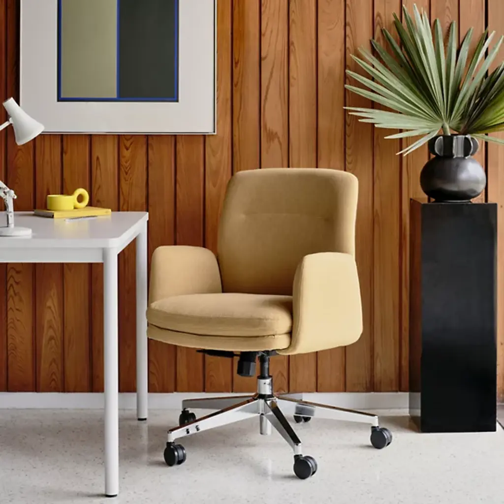 The Softside Task Chair from Branch brings plush, ergonomic support to the modern workspace or home office. Designed with all-day comfort in mind, its hybrid cushioning combines 2 inches of plush foam with nested coils for a soft yet supportive feel. Integrated lumbar support follows the natural contours of your back, encompassing you in the comfort of the soft sides and armrests. Height adjustment, tilt tension, and removable armrests allow for a customized fit, while a 20° tilt range and three lock positions balance flexibility and stability, making workdays more comfortable.