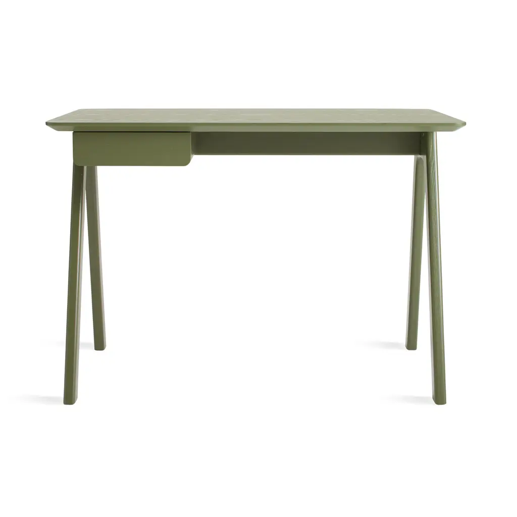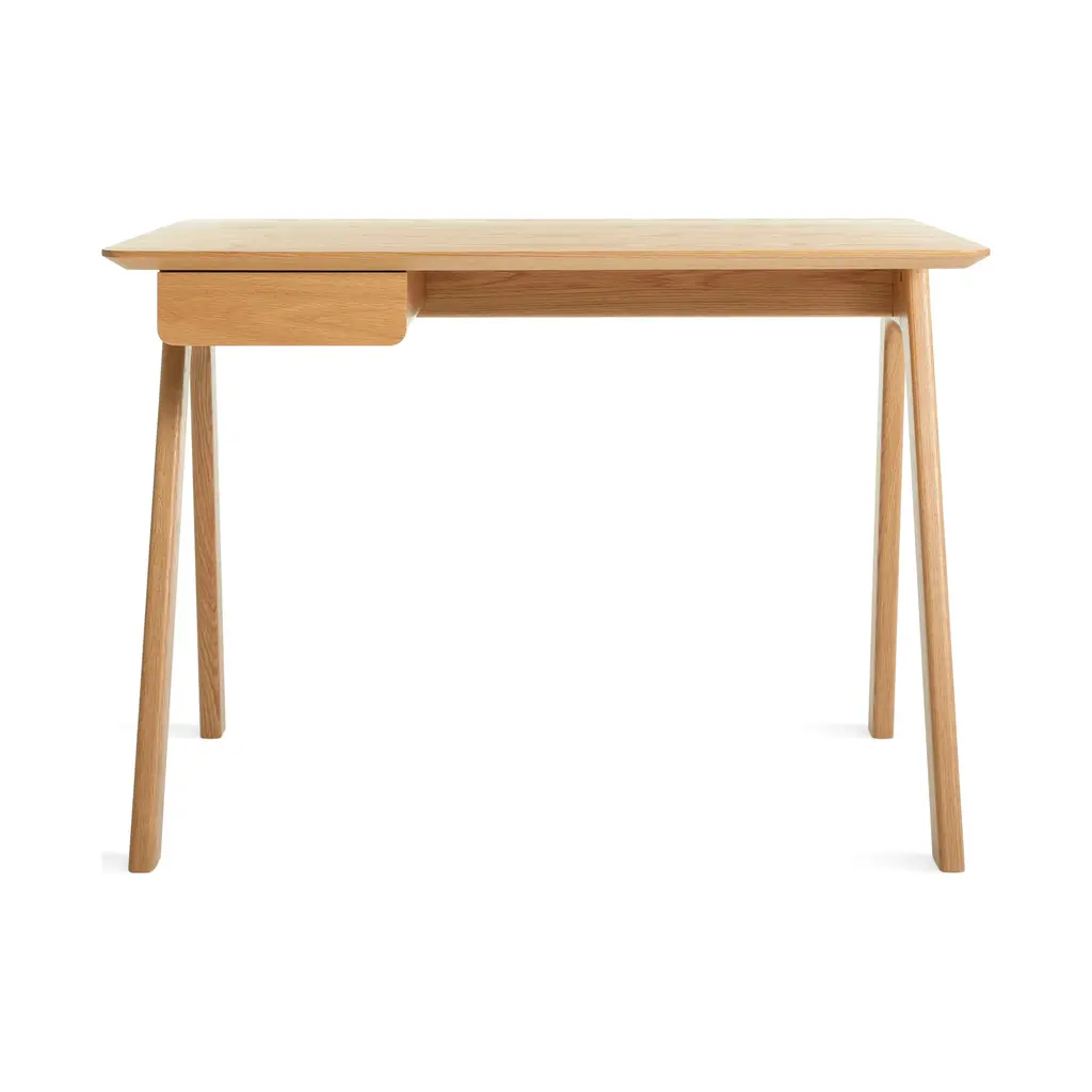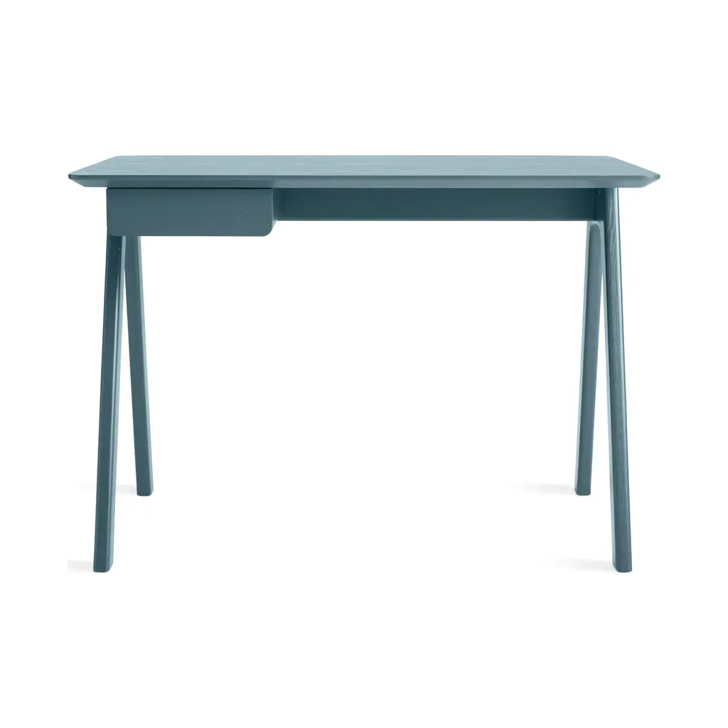 Handsome and minimalist, but with endless appeal, the Blu Dot Stash Desk showcases a refined profile and chic finish options that elevate any home office or workspace. Featuring a clean, radius-edged work surface crafted from naturally finished or painted wood, Stash offers a single pencil drawer for compact storage and slender solid wood legs providing ample legroom underneath. Pair with a comfortable desk chair like the Daily Task Chair and desktop organization decor for a productive workspace that makes a statement.Highlights