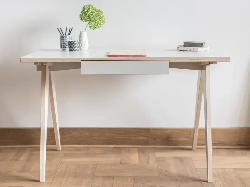 Handsome and minimalist, but with endless appeal, the Blu Dot Stash Desk showcases a refined profile and chic finish options that elevate any home office or workspace. Featuring a clean, radius-edged work surface crafted from naturally finished or painted wood, Stash offers a single pencil drawer for compact storage and slender solid wood legs providing ample legroom underneath. Pair with a comfortable desk chair like the Daily Task Chair and desktop organization decor for a productive workspace that makes a statement.Highlights