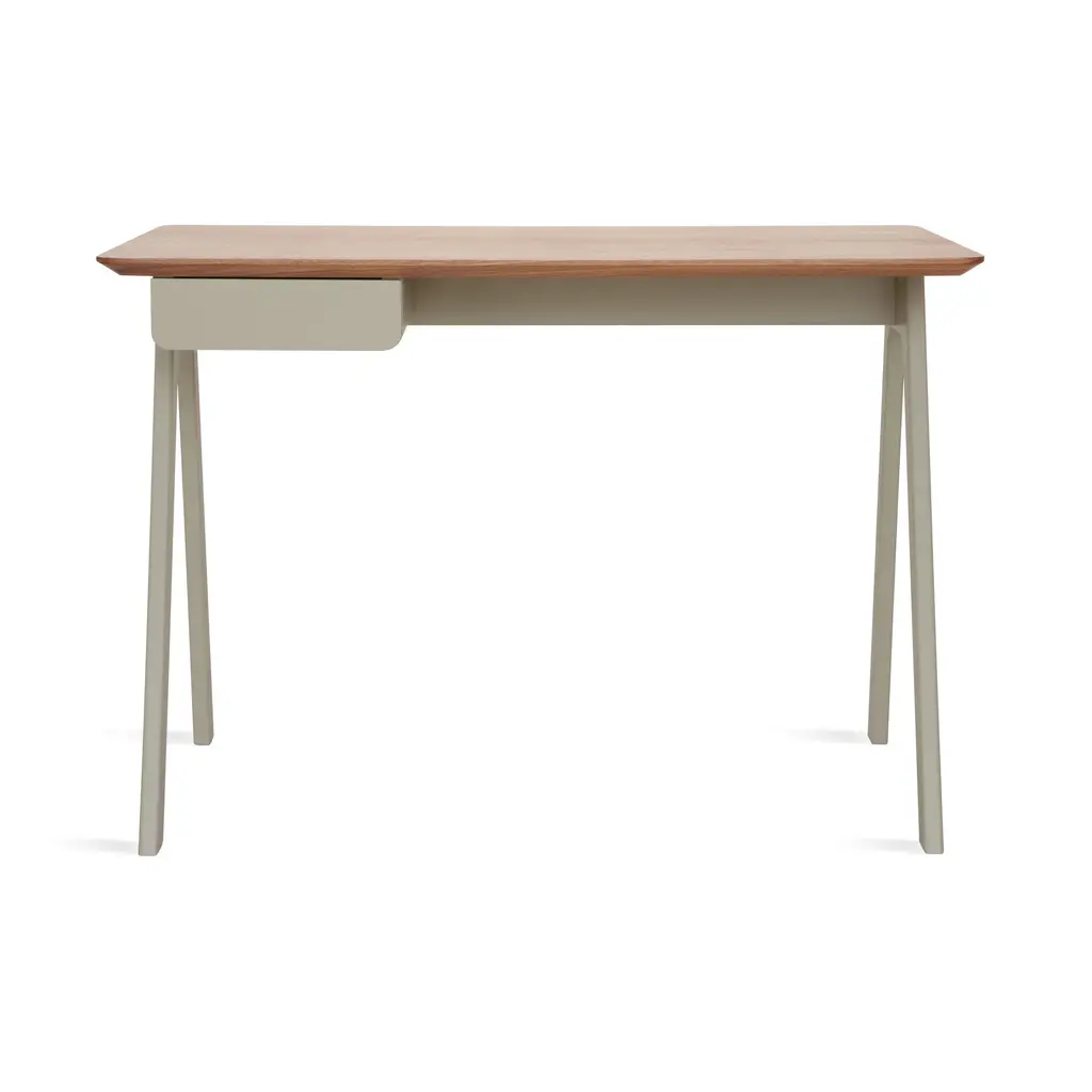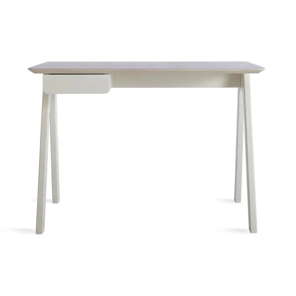 Handsome and minimalist, but with endless appeal, the Blu Dot Stash Desk showcases a refined profile and chic finish options that elevate any home office or workspace. Featuring a clean, radius-edged work surface crafted from naturally finished or painted wood, Stash offers a single pencil drawer for compact storage and slender solid wood legs providing ample legroom underneath. Pair with a comfortable desk chair like the Daily Task Chair and desktop organization decor for a productive workspace that makes a statement.Highlights